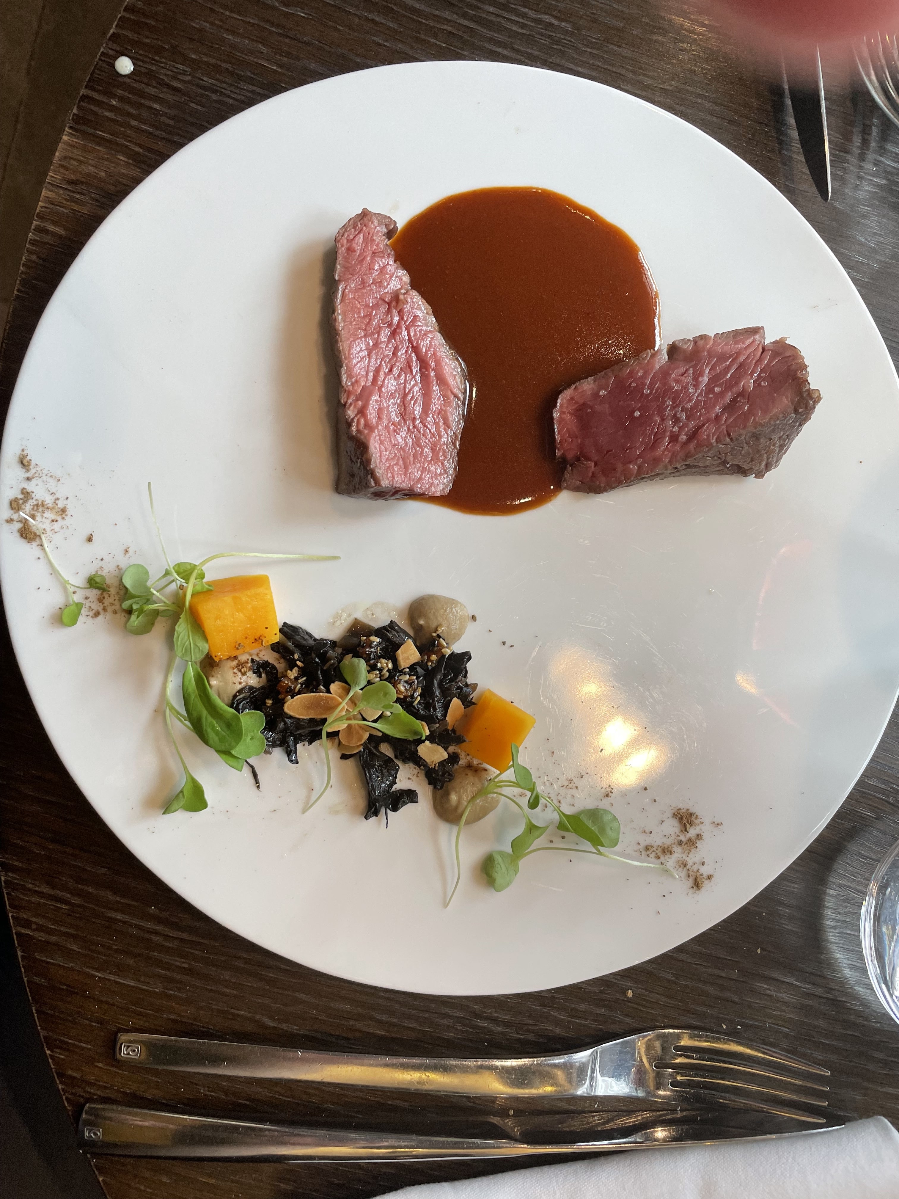 Très bon service, personnel disponible et à l'écoute. Excellente cuisine, petit bémol mon Wagyu est arrivé un peu tiède mais c'était très bon !
