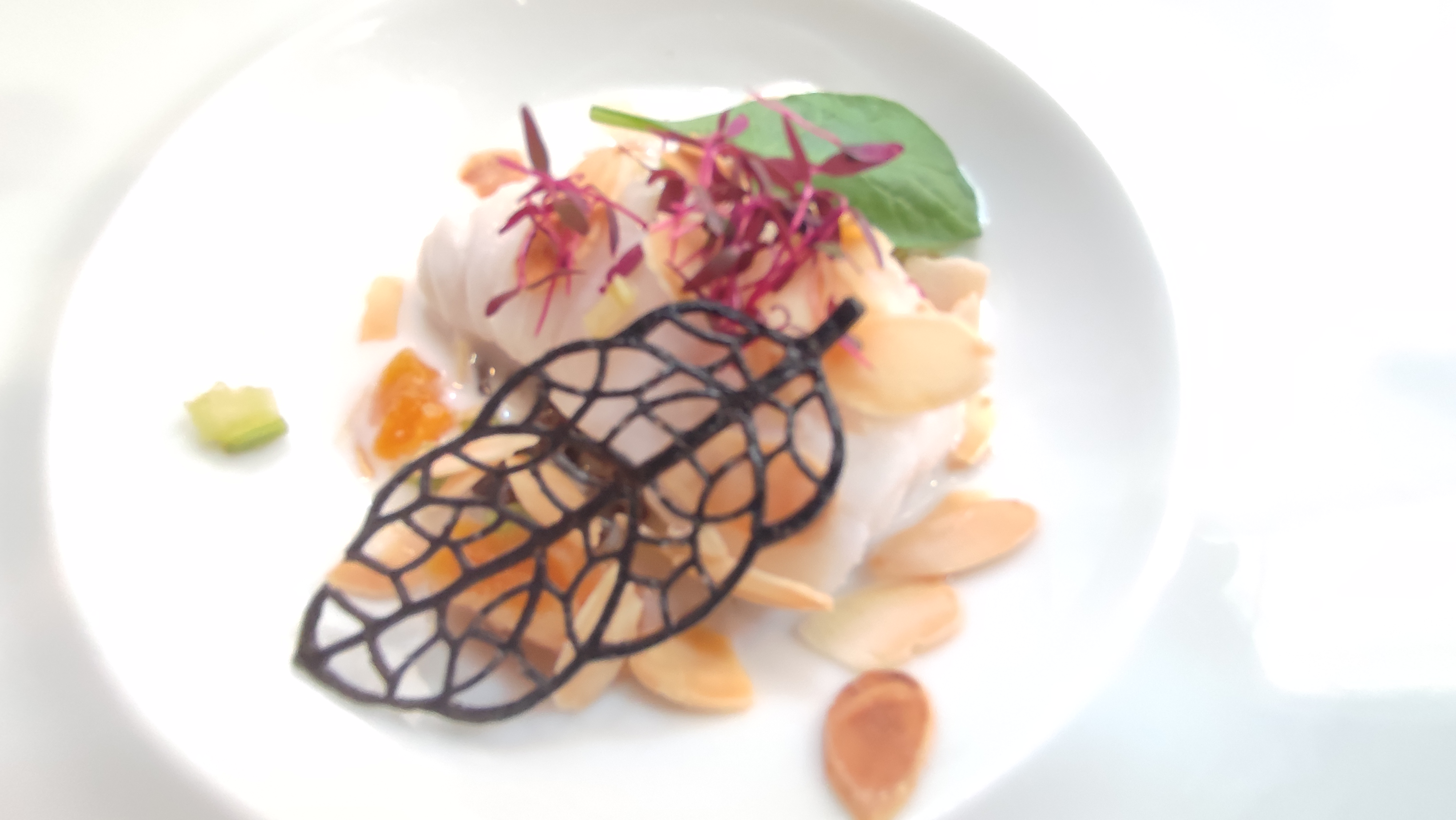 Dans l'assiette, c'est très beau et très bon : joliment présenté, ingrédients de qualité, cuissons maîtrisées, des saveurs, des textures, des associations, de l'originalité, du plaisir. La déco est sobre et élégante, moderne. Le service est présent sans être oppressant, souriant et agréable. Seuls bémols : ambiance assez bruyante quand salle pleine, même s'il n'y a pas tant de tables que cela, et difficulté à entendre/comprendre la présentation des plats. L'addition grimpe vite!