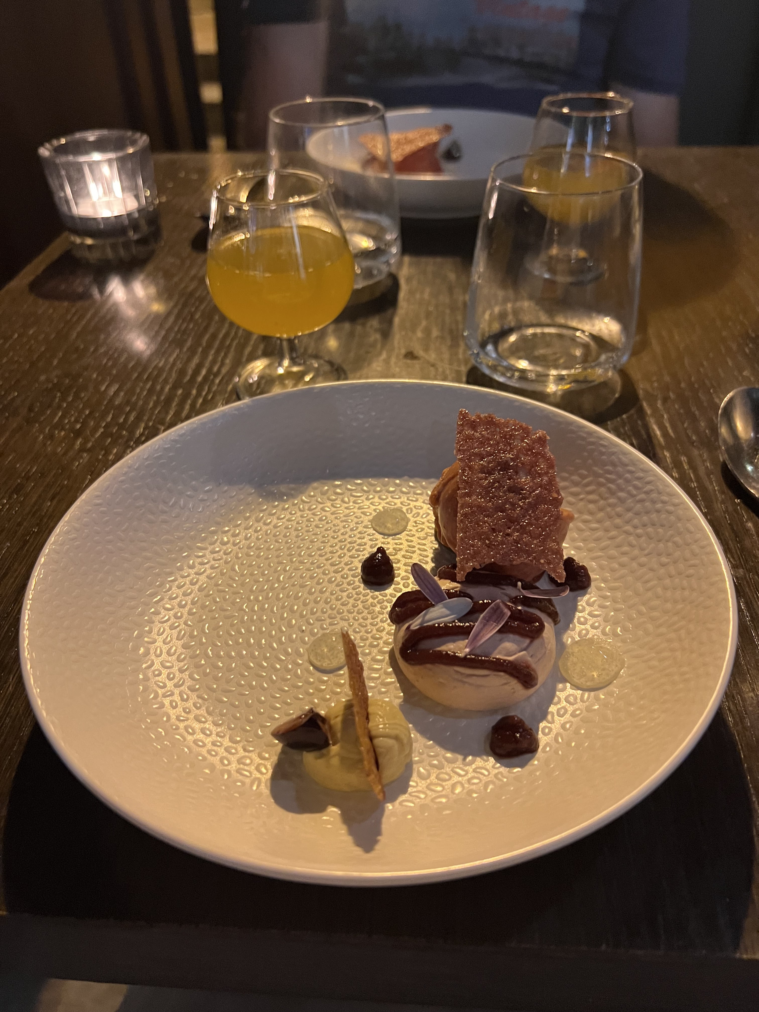 Restaurant qui vaut le détour, c'est une cuisine d'excellence, on a pris le menu à 8 plats, tout c'était hyper bon du début à la fin, j'en rêve encore. C'était l'anniversaire de mon mari, l'équipe était super gentille avec nous et lui on même offert un dessert avec une bougie.