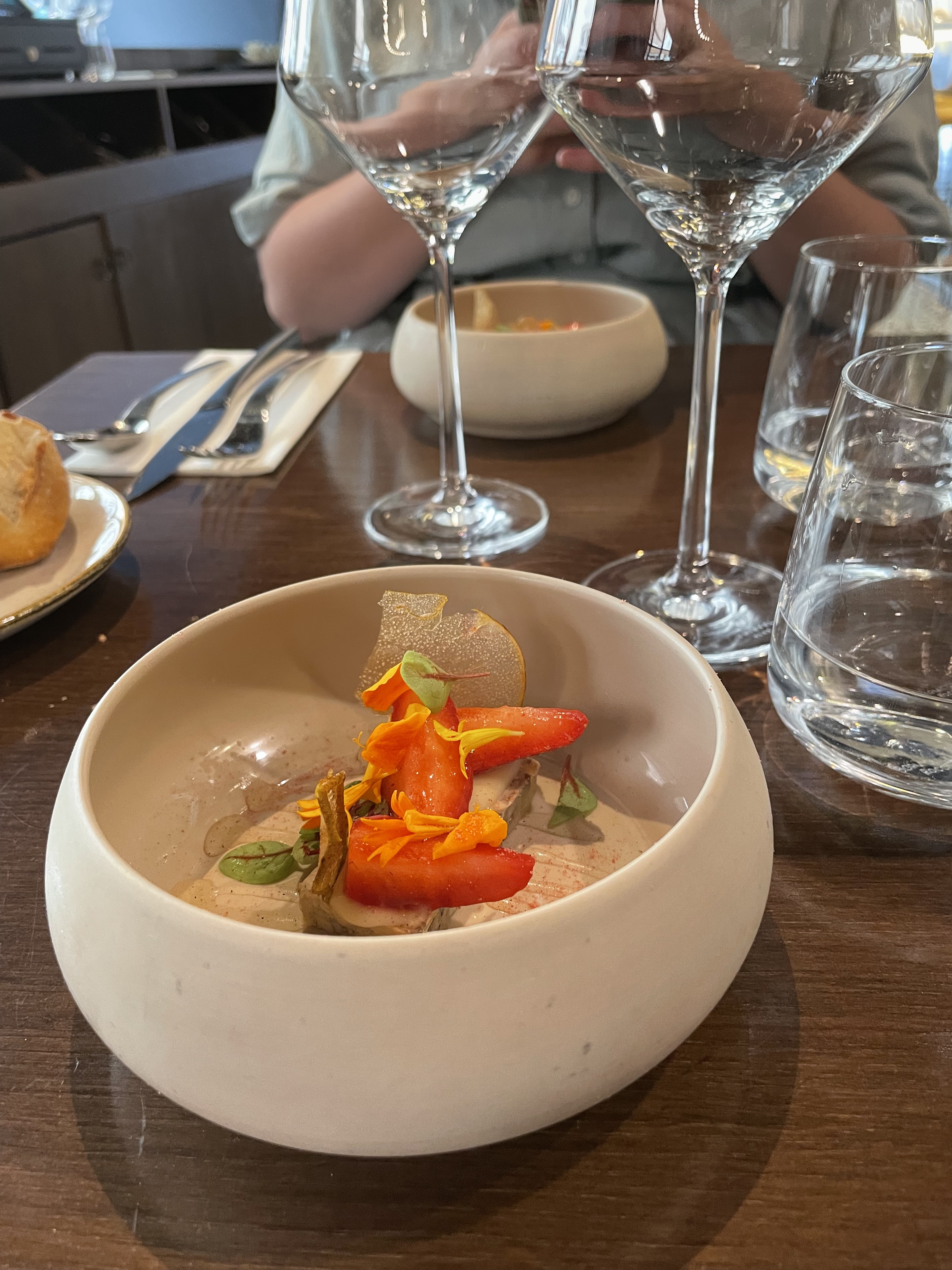 Très belle expérience d’un bout à l’autre du repas . Très belle exécution des plats . Ambiance très agréable et excellent service. Les tables sont un peu petites et rapprochées mais sans que cela soit gênant,