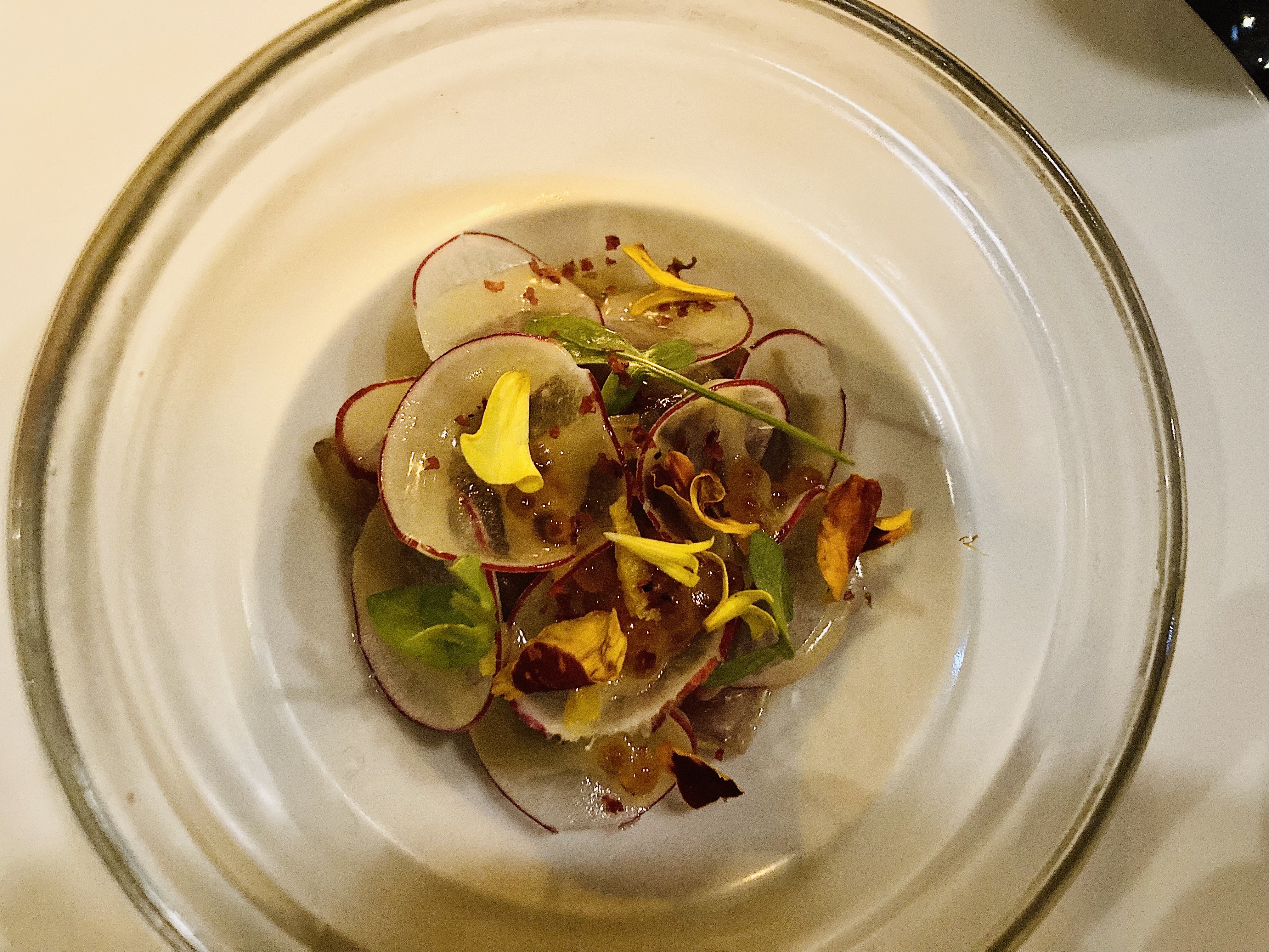 C'est effectivement très bon et fin. Il y avait une majeure japonaise dans le menu omakasé de ce soir mais ce n'est pas pour me déplaire. Le service était plutôt gentil et rapide. Le cadre est plutôt branché cool, plutôt que coincé étoilé. Les boissons sont pour le coup un peu cher (13eur un verre d'umeshu) mais le contenu de l'assiette vaut le coup.