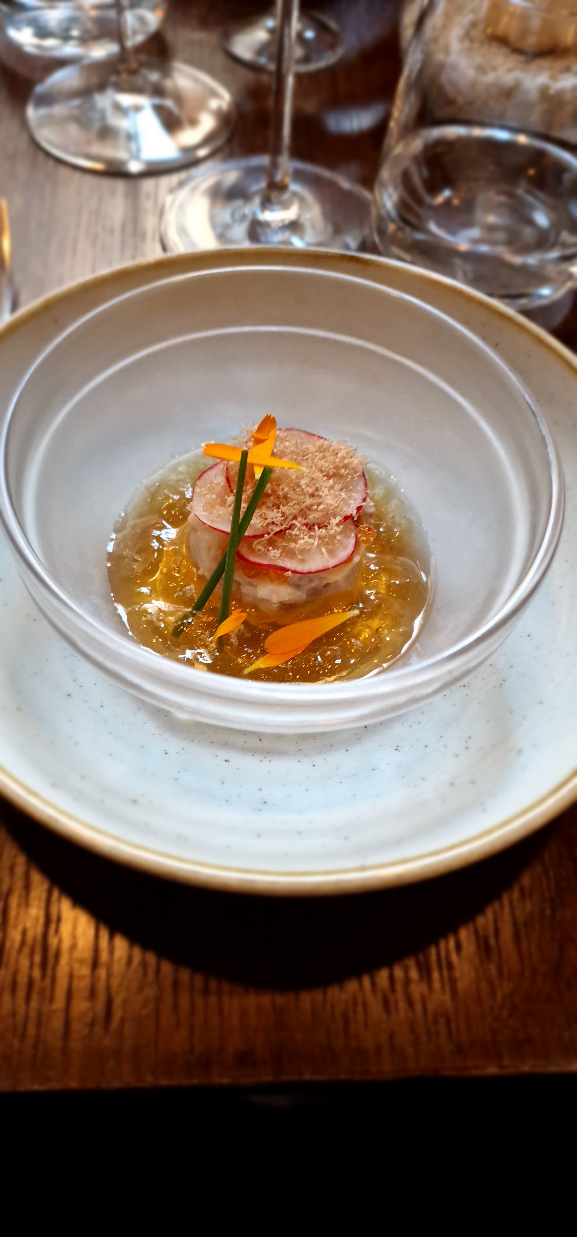 Magnifique expérience culinaire et visuelle. Un plaisir pour les sens : repas délicieux, présentation artistique et cadre raffiné. Service impeccable, rapide et efficace. Je recommande expressément à celles et ceux qui souhaitent passer un moment hors du temps dans un quartier historique.