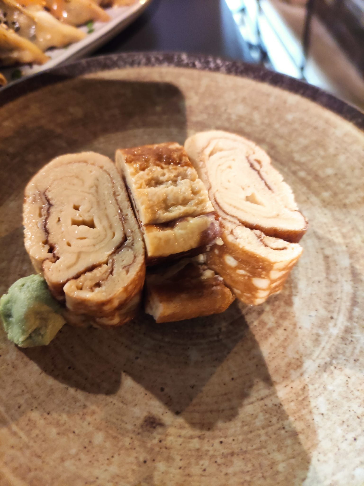 C'était vraiment très bon. Je suis assez exigeant avec des gyozas, mais ce restaurant m'a pas du tout déçu. Franchement, c'est quand même très rare d'avoir des gyozas comme ça. Le goût est là, surtout la la pâte de gyozas est cuite parfaitement. Avec des petits rondelles de ciboulettes, les gyozas sont encore meilleurs. Tamagoyaki, c'est ok. Le personnel est sympa. C'est juste que le restaurant est situé dans un rue où beaucoup de gens et voitures qui passent, comme tous les restaurants dans cette rue, c'est pas hyper calme l'ambiance.