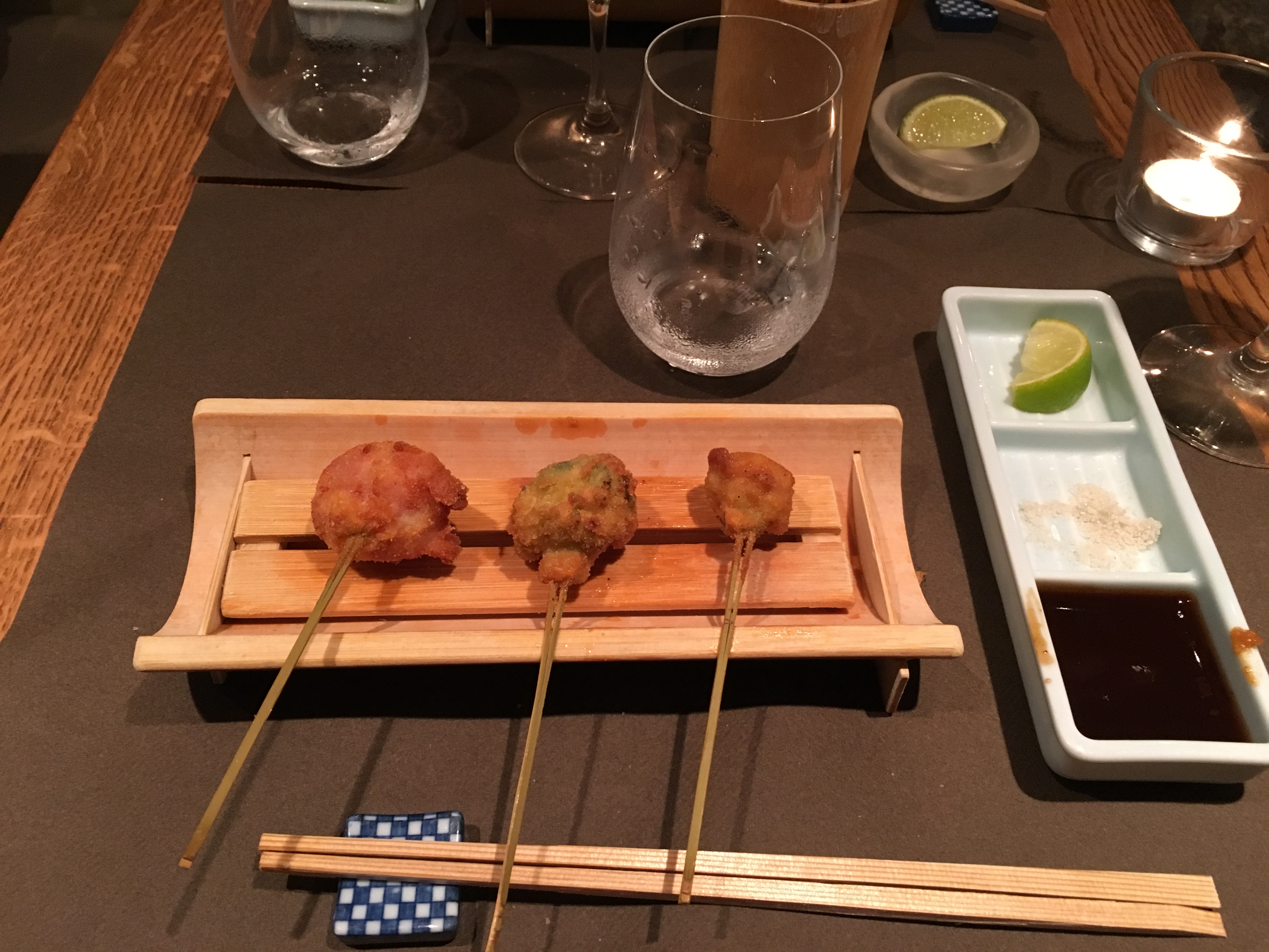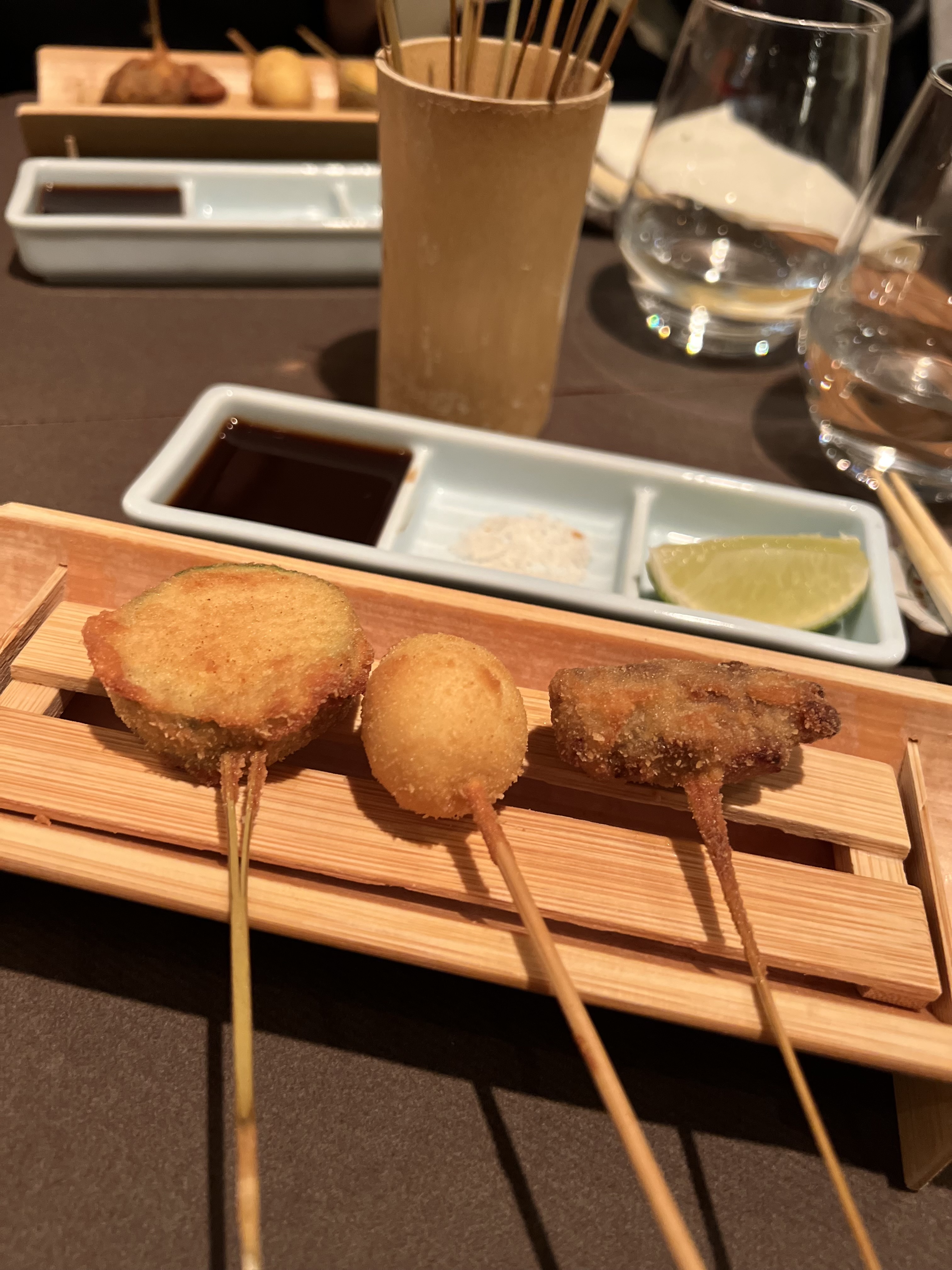 Découverte des délicieux Kushiage, dîner rythmé par le nombre de bouchées à déguster. Ce n'est pas très copieux, gros mangeur s'abstenir !