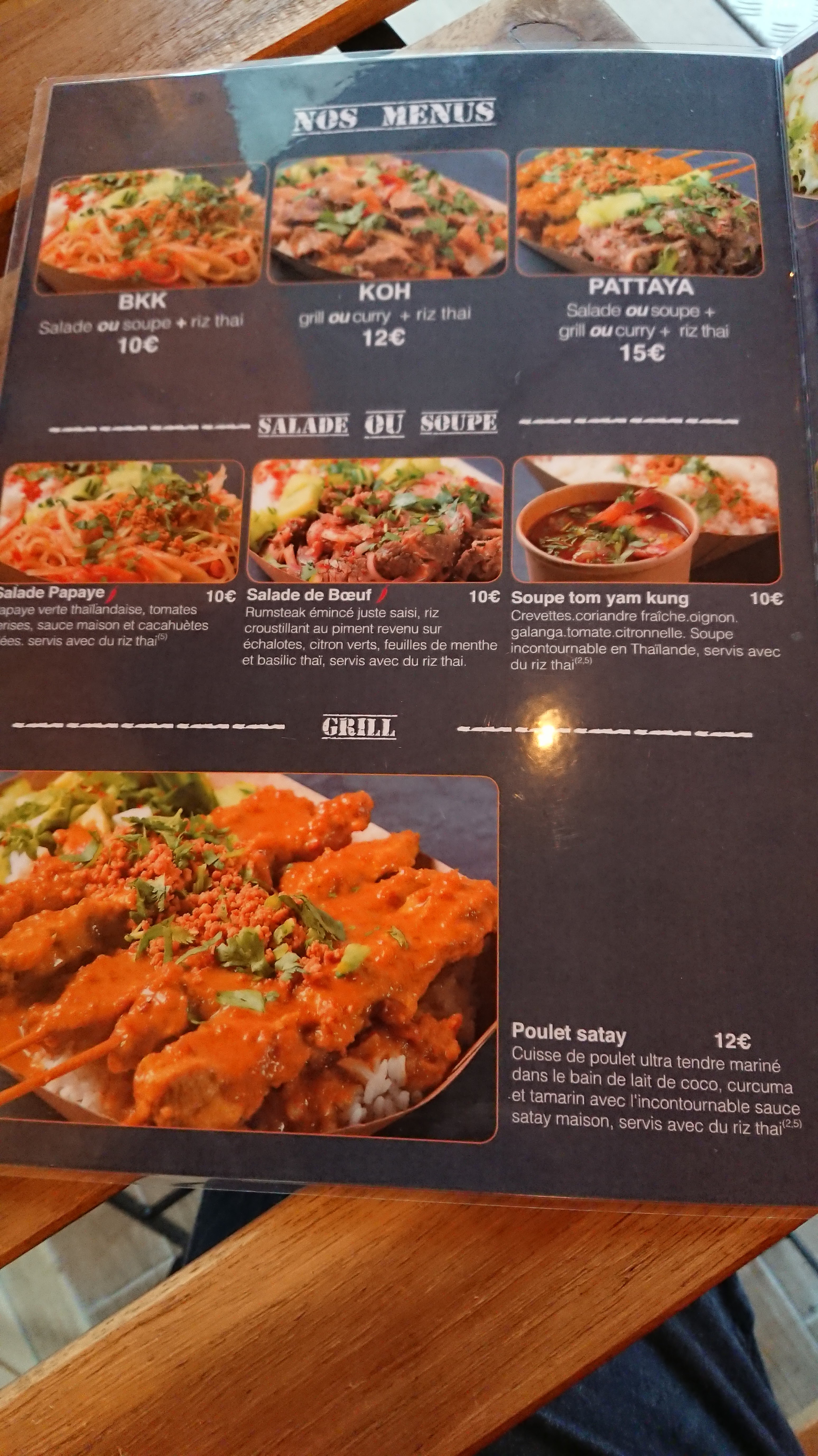 Je recommande le Pad Thaï et le Poulet Sataï.