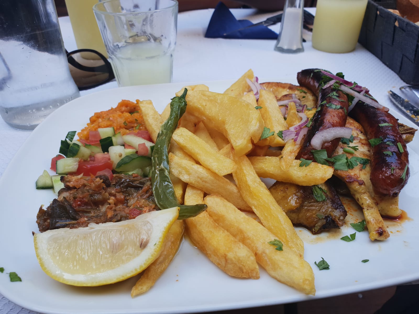 voilà un exemple de ma commande soit disant Grillade mixte à 17€50. Les prix sont très abusés par rapport aux plats. Un des serveurs est très mal éduqué , j’ai demandé une chaise haute pour mon fils, j’ai attendu plus que 10 min et lorsque j’ai redemandé ( car je ne sais pas où sont ) il m’a répondu d’aller chercher la chaise seul, une très mauvaise expérience pour moi. Il n’y a aucun rapport entre la qualité et la quantité de repas avec les prix. A fuir