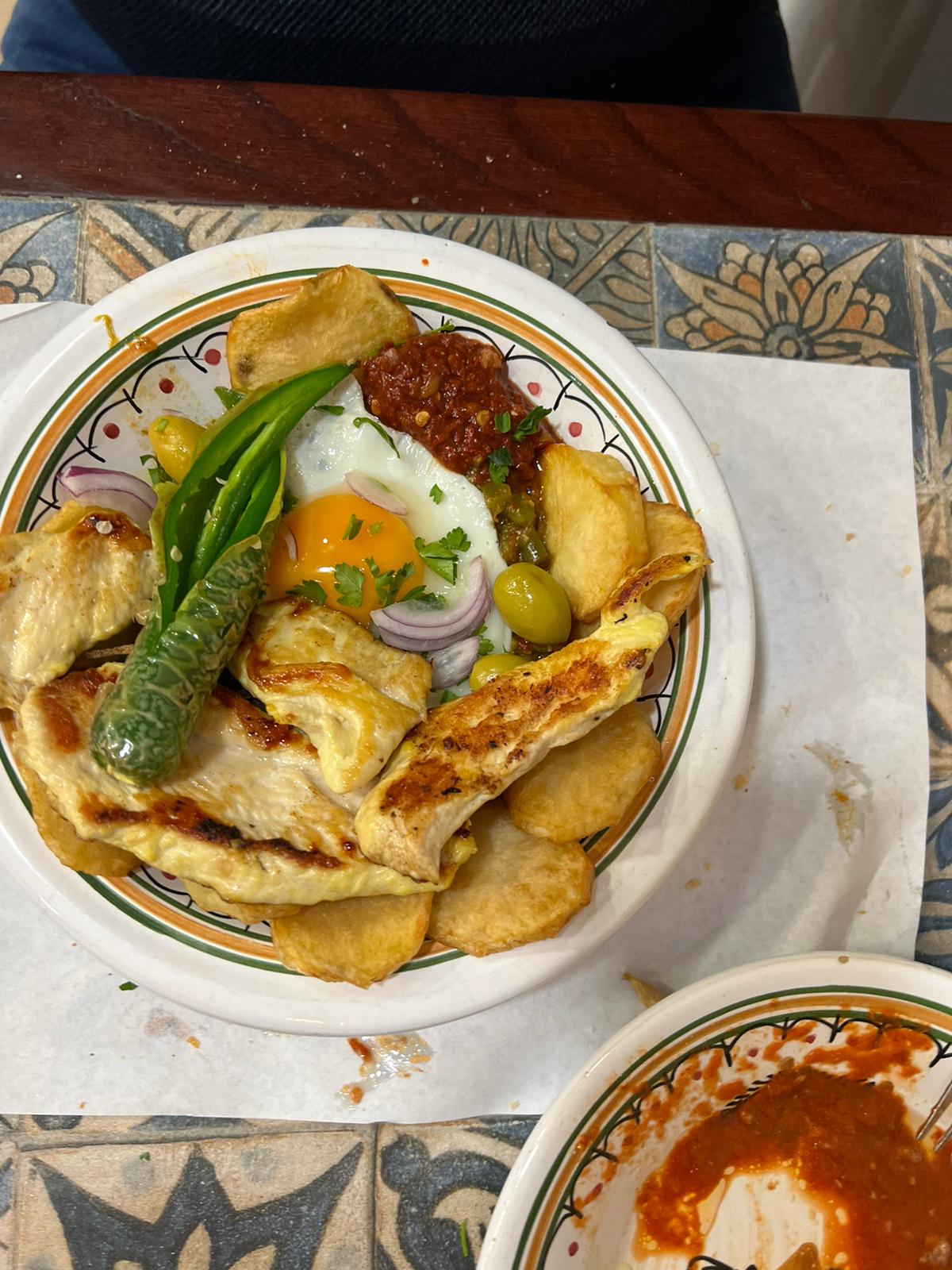 Un espace chaleureux et authentique, un plat généreux et un accueil magnifique. On a pris le plat grillades poissons calamars et crevettes.. Ma seule remarque c’est par rapport aux crevettes qu’on n’a pas apprécié (c’était pas frais ) et comme je suis enceinte j’ai pas osé manger plus qu’une…sinon le reste était plus que bon . On reviendra nchalah
