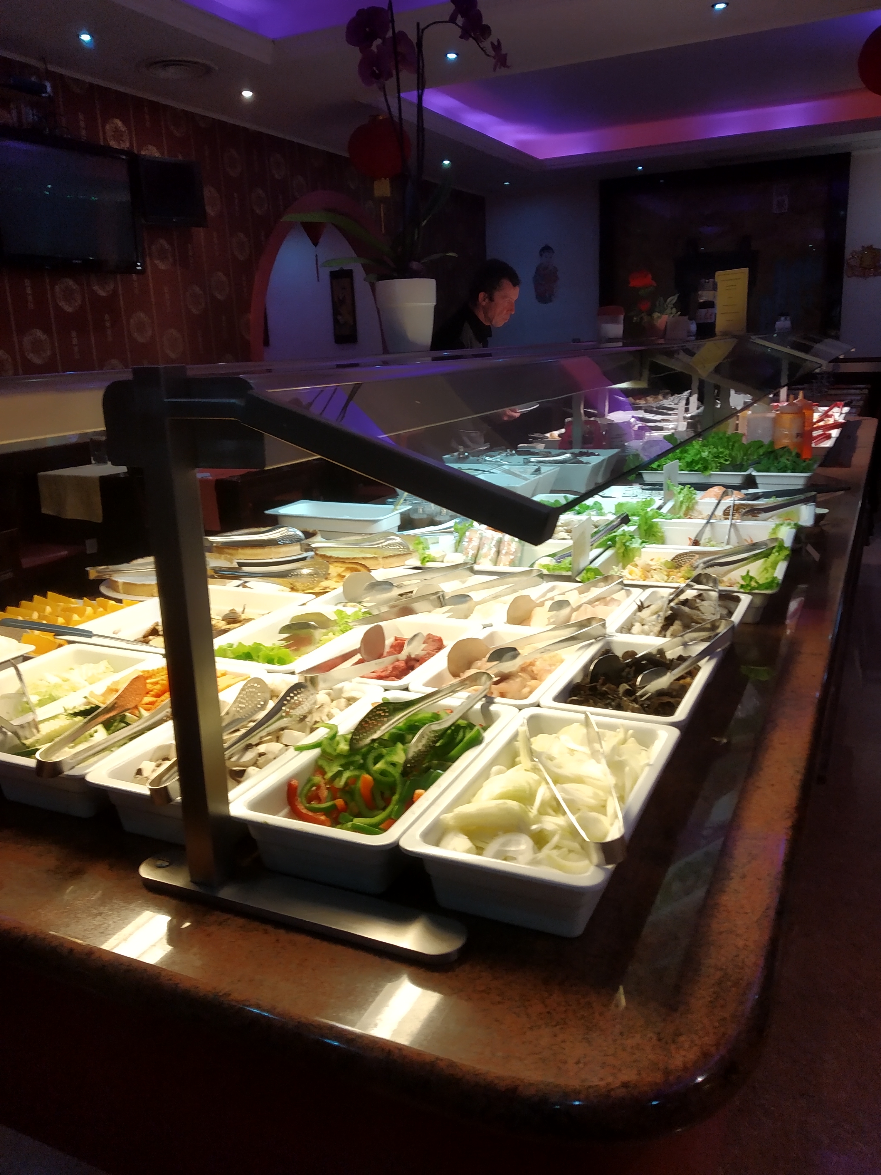 Buffet avec pas trop de choix dans les plats , nourriture moyenne . Parcontre la viande du Wock (bœuf )est excellente et très tendre on s’est régalés . Personnel agréable . Établissement propre .