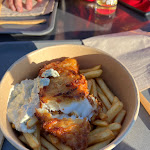Après avoir attendu en file pour commander des poke au snack, la serveuse nous informe qu'il n'y a plus de poke ni de pâtes disponibles. Nous avons finalement opté pour des fish and chips avec une boisson, ce qui nous a coûté 82€ pour 4 personnes ! Cela semble excessif pour des fish and chips. Il aurait été plus appréciable de nous informer plus tôt qu'il restait peu de choix, plutôt que de laisser les clients attendre en vain. Sans oublier que nous avons dû patienter une demi-heure supplémentaire avant de recevoir nos plats. Je ne recommande pas ce snack.