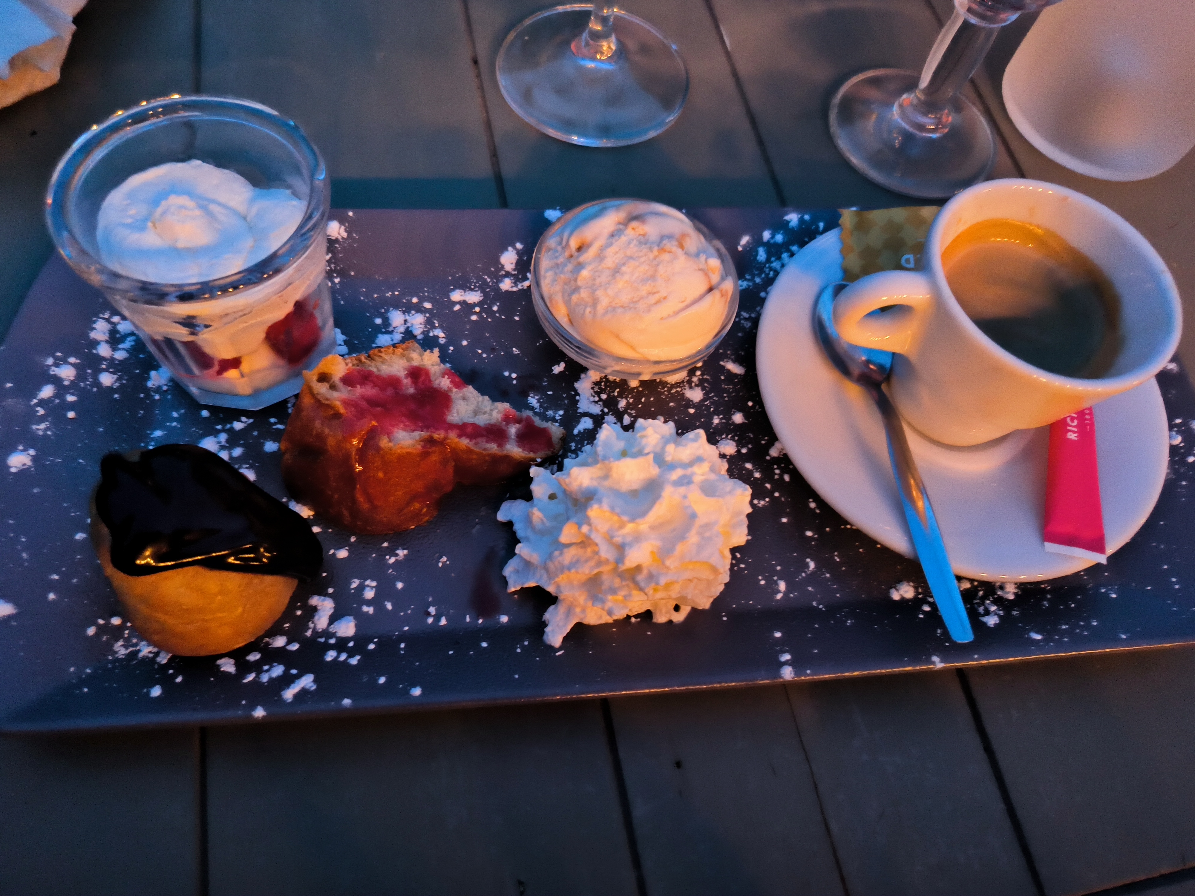 Accueil bien Repas: Salade césar...humm trop bonne Pizza suprême : bonne et copieuse Café gourmand : j'aurais pas du, trop copieux, mais miam miam... Et café très bon goût