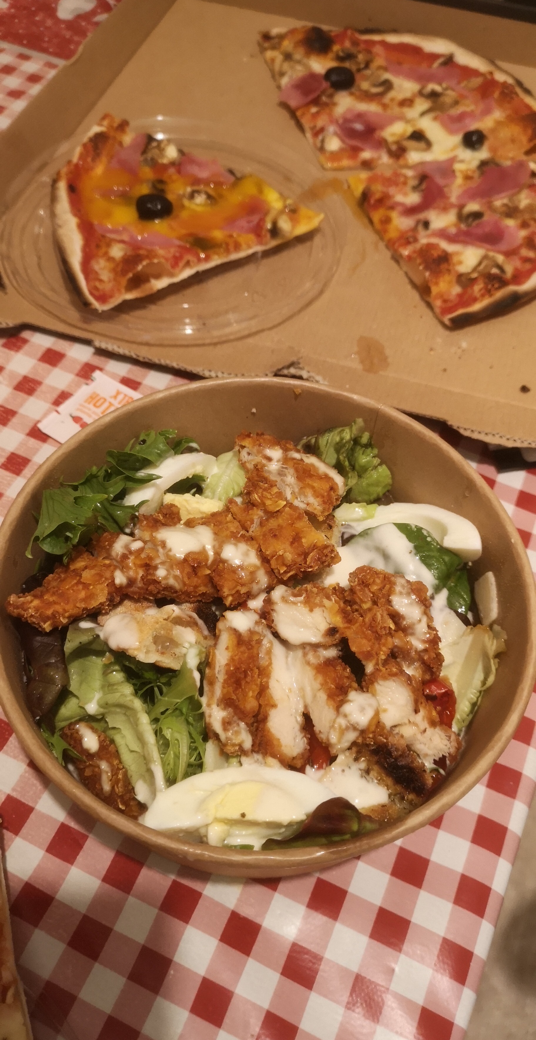 Première fois en commande Uber : expérience mitigée dans la mesure où les salades sont bien meilleures que les pizzas. Pour une pizzeria, c'est plutôt moyen ! Les photos parlent d'elle-mêmess = pâte ultra fine, cramée sur les bords et pas cuite au centre, faible garniture, tiède... Seules les salades relèvent le niveau, d'où l'étoile supplémentaire Deuxième fois sur place : plats insipides, service beaucoup trop lent, ingrédients manquants et pas de geste commercial, débarras des tables alors que les plats et les verres n'ont pas été terminés... Bref nous ne reviendrons plus !