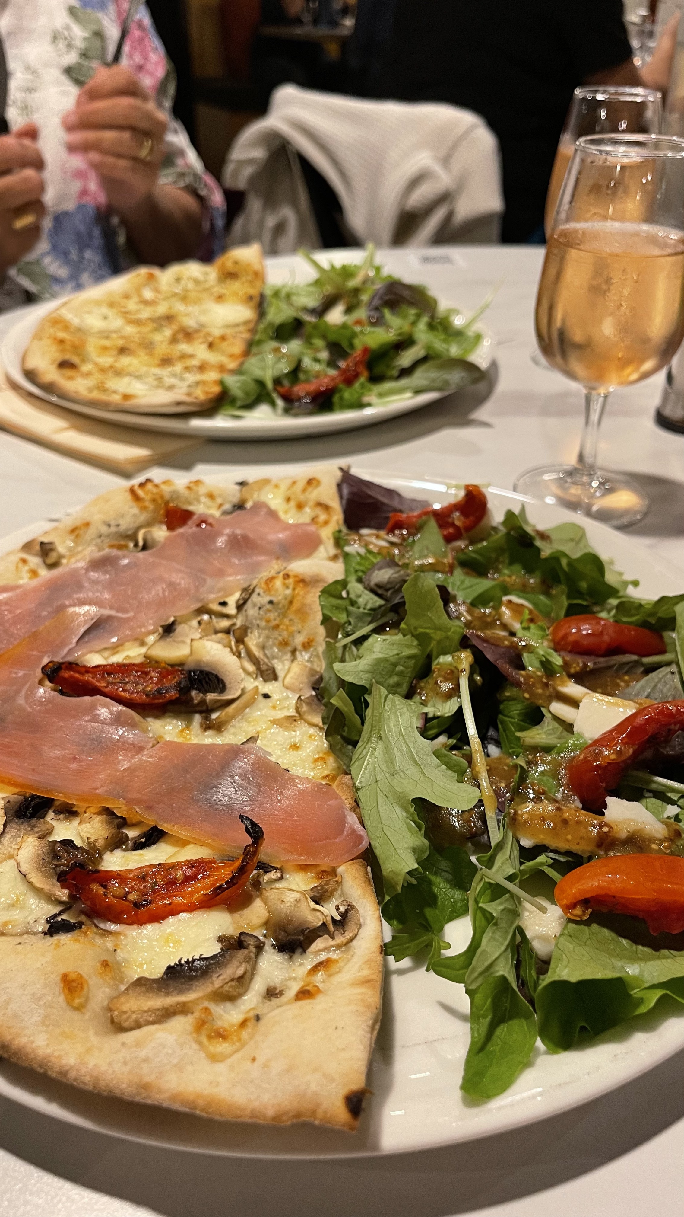 Arrêt repas en sortie d’autoroute. Pizzeria juste après le péage. Surprise: c’est bon, bien accueilli, entrées goûteuses, cuisson au feu de bois, calzone et salade excellentes. Une très bonne découverte. We ´ll be back! 😉😉