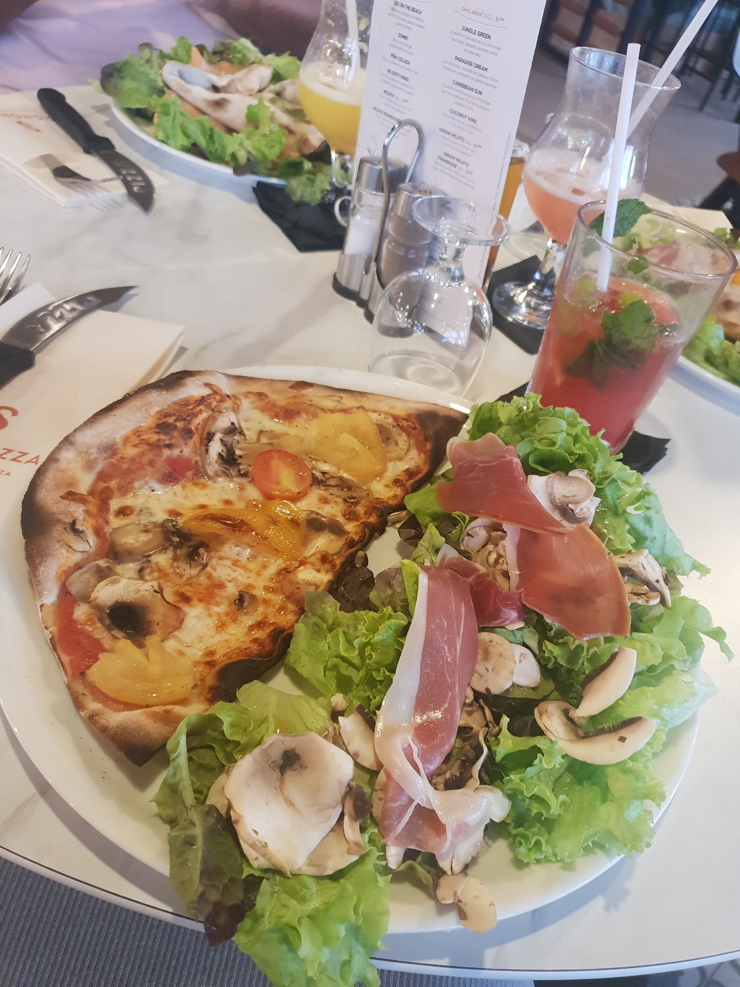 Pizza à la cuisson parfaite !! Salade fauché et belle décoration... L'Italie vous invite à Rivesaltes ! J'y retourne des que possible