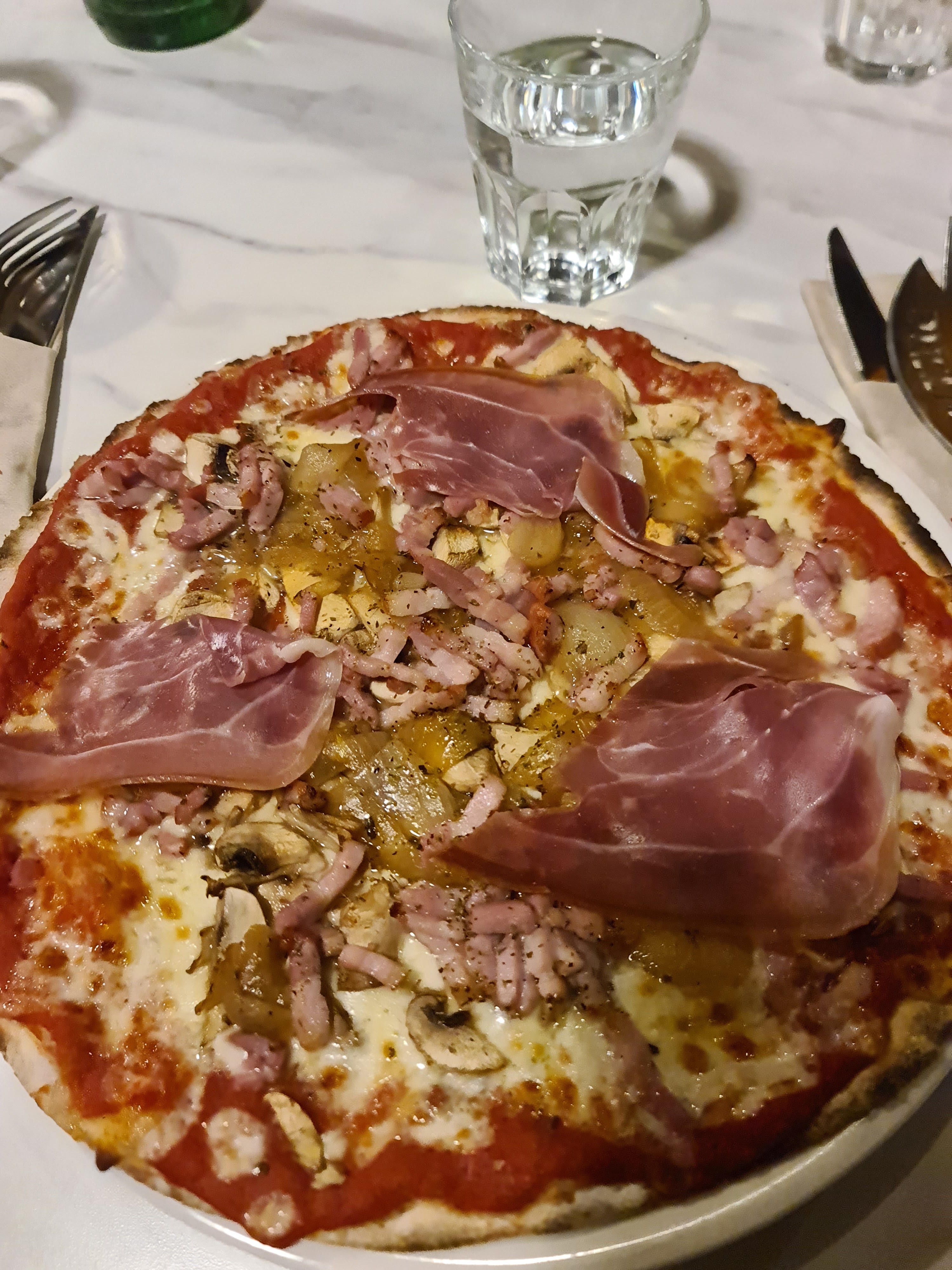Quelle belle ambiance et quel service presque sympathique. Malheureusement, la nourriture était trop lourde (trop de crème épaisse sur les pâtes, ou quelques cuillères à soupe d'huile sur la pizza) et deux plats sur quatre sont arrivés froids. Je n'y retournerais pas.
