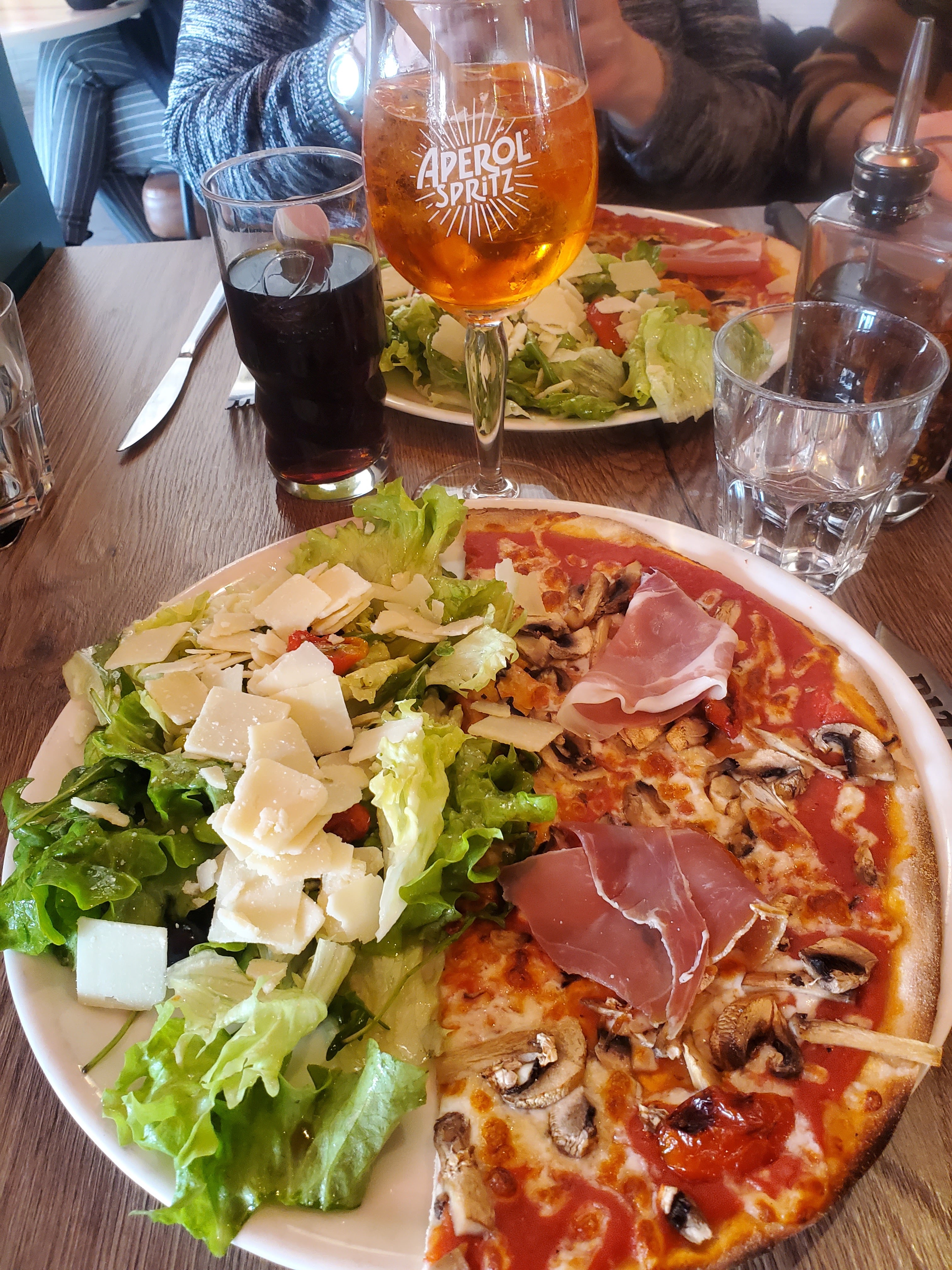 Restaurant très bien! prix abordable. Pour ma part la demi pizza avec salade pour 12,90€ me semble excessifs puisque une pizza coûte le même prix. Quelques photos des plats délicieux est garni quand même!
