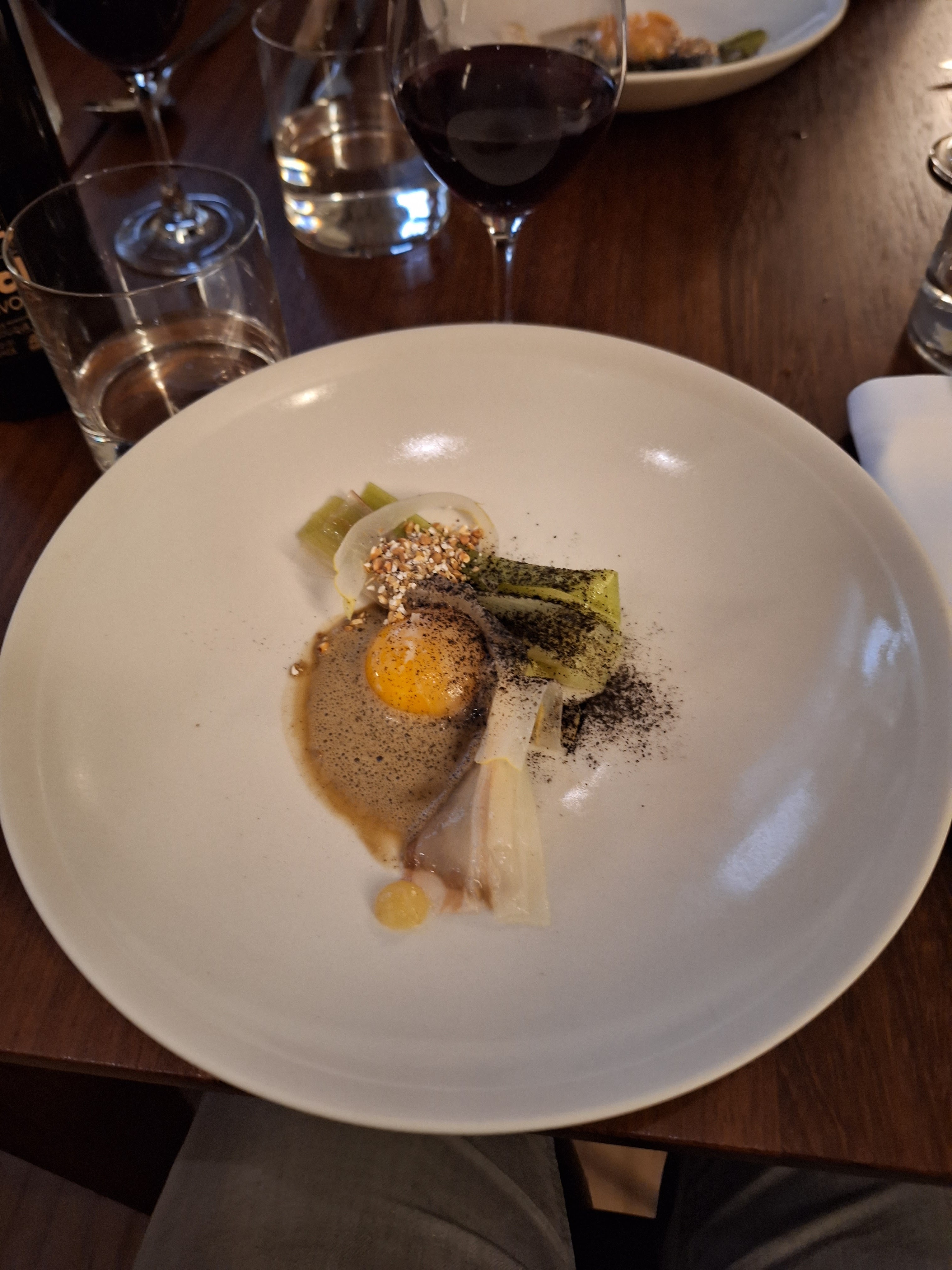 Une merveilleuse expérience! J'ai pris le menu 5 assiettes. Nous avons été guidés à travers les goûts exquis de la nourriture et du vin. Service absolument parfait. Le lieu est un mélange, avec le brut, l'ancien toujours présent, pas entièrement remplacé par le nouveau ; un reflet délicat de leurs plats. Ambiance chill et détendue, un restaurant haut de gamme néanmoins. Certainement une expérience que je recommande!