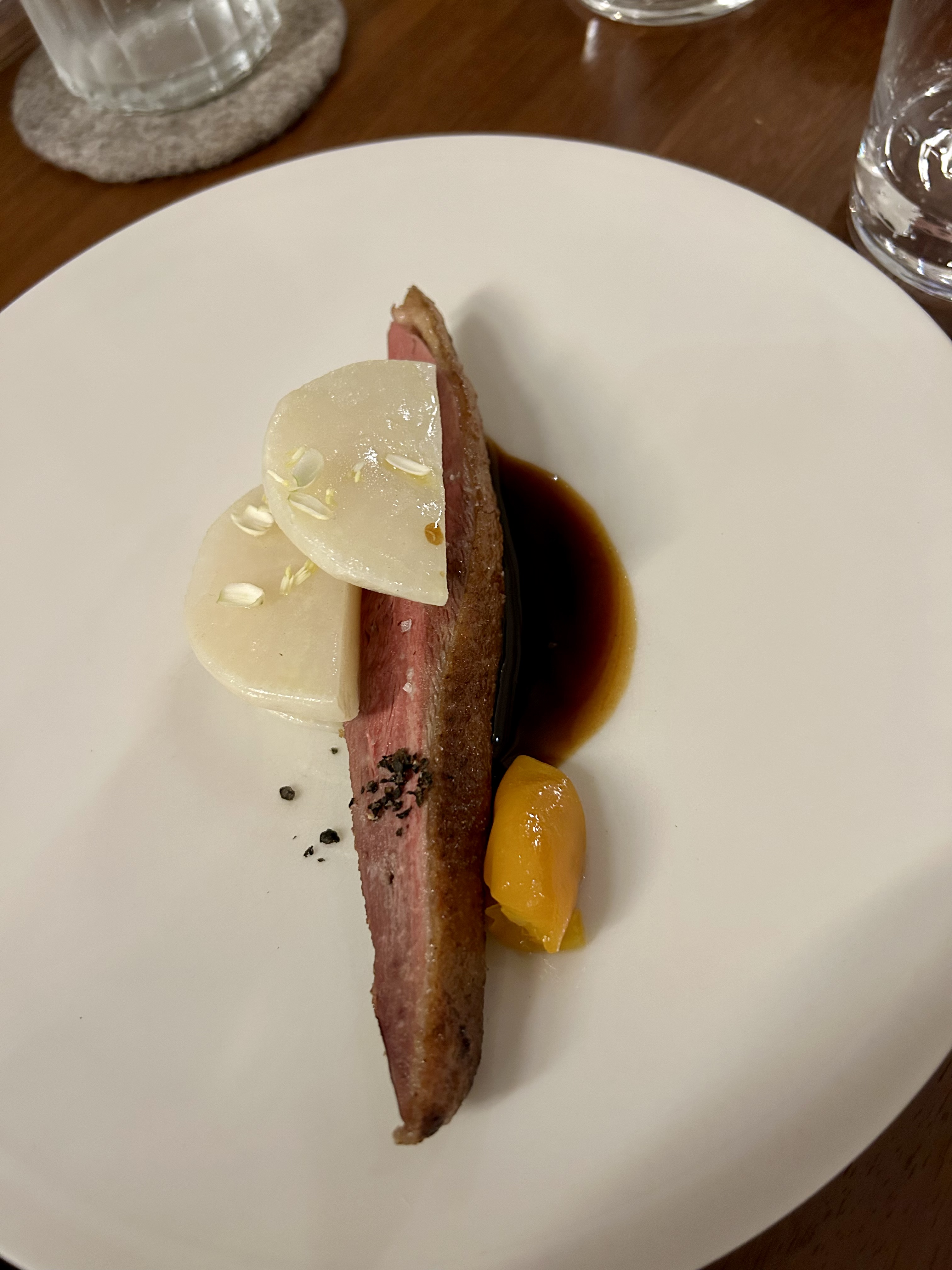 Un des meilleurs restaurants qu'il m'ait été donné de vivre ! Tous les produits sont sublimés. Nous avons partagé des crackers de mais avec une crème au bleu de brebis à tomber par terre, puis de la cane accompagnée de Chou et d'une mousse d'aubergine avec un goût de fumé incroyable ! Enfin, nous avons terminé sur un abricot poché au romarin, avec une crème glacée au sésame noir et du cacao cru, de quoi divinement terminer ce repas ! Foncez-y !