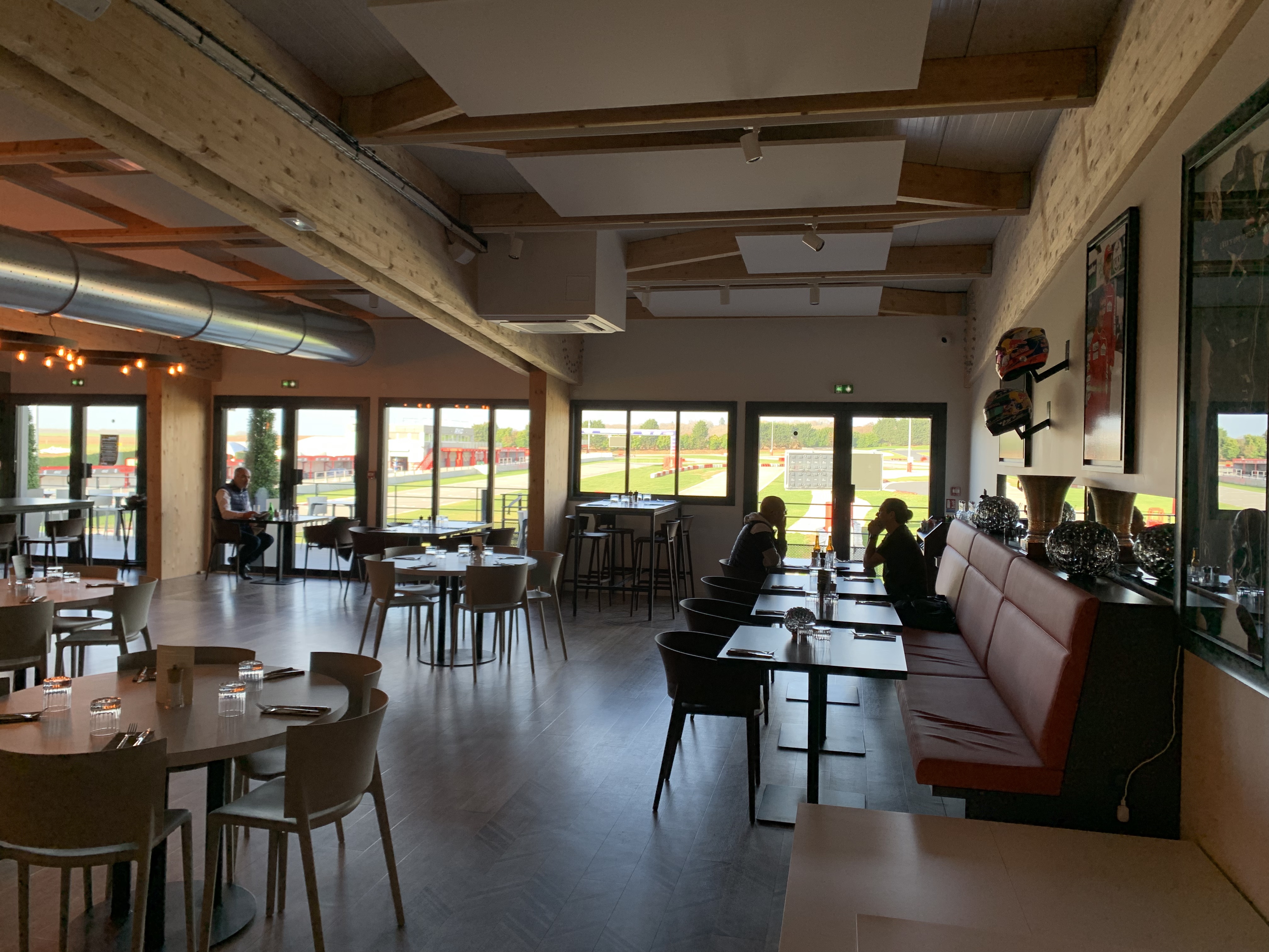 J'y ai mangé une fois avant de reprendre la piste et c'était superbe. Le décor est original avec des affiches de courses, des combinaisons de pilotes et des casques, avec en plus une vue sur la piste. Les burger sont gros et ils n'empêchent pas de reprendre la piste. L'accueil est chaleureux et le service rapide. Rien à dire de mal