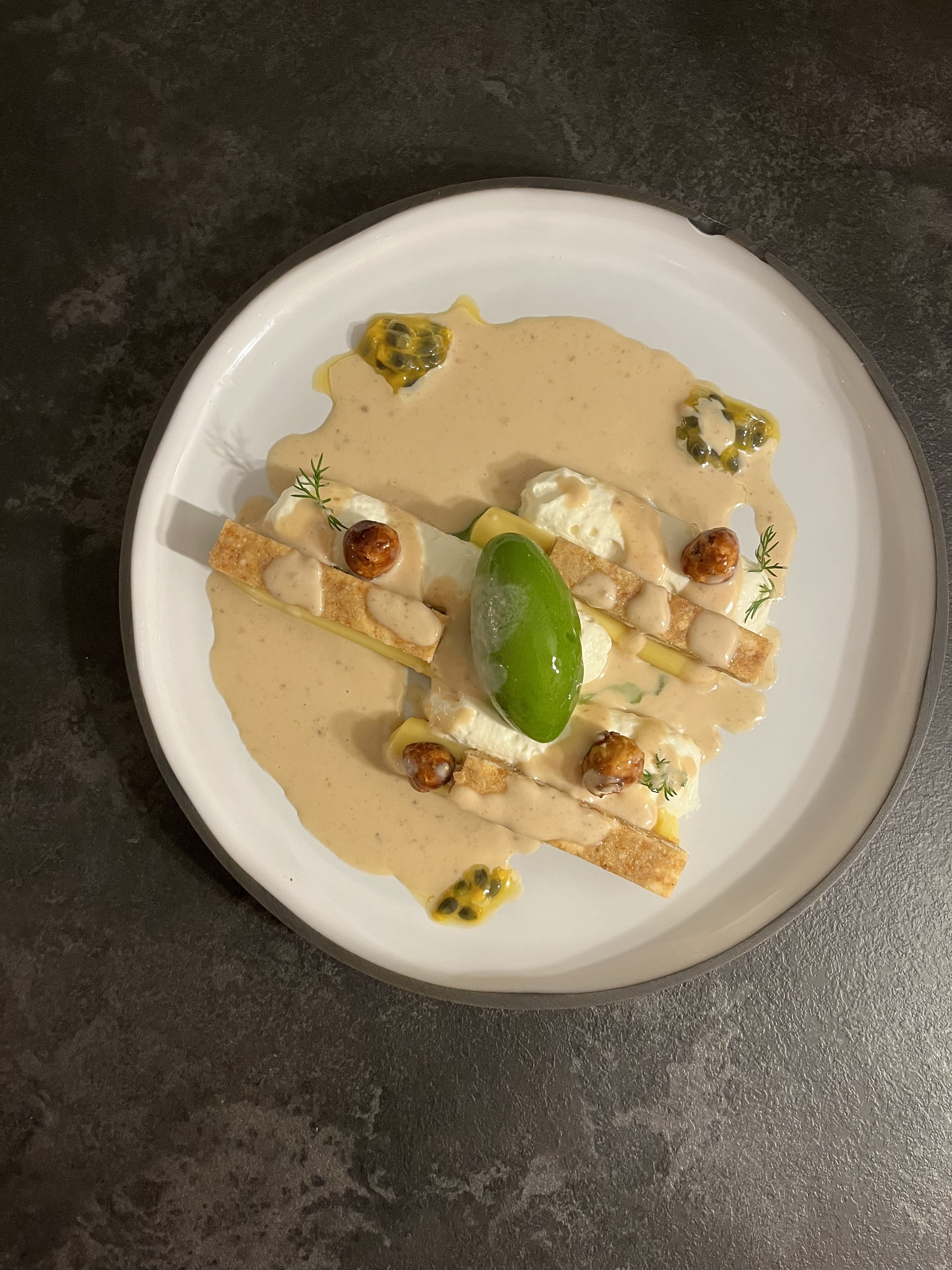 Pépite culinaire !! Associations épatantes et surprenantes. La carte change très régulièrement et le rapport qualité prix est indiscutable, surtout au déjeuner. Mention particulière pour les desserts fait par un pâtissier. C’est appréciable de finir sur un met raffiné, à la hauteur du reste du menu. Dommage que le mien ne soit “noyé” dans la crème noisette. J’aurais préféré la rajouter moi-même mais c’est un avis personnel. En revanche j’ai adoré le sorbet à l’aneth le composant, il apporte une touche de fraîcheur qui se mari avec excellence au saveur de fruit de la passion et de chocolat blanc. En bref, une réussite! Et la soirée n’aurait pas été aussi satisfaisante sans compter sur la gentillesse du personnel