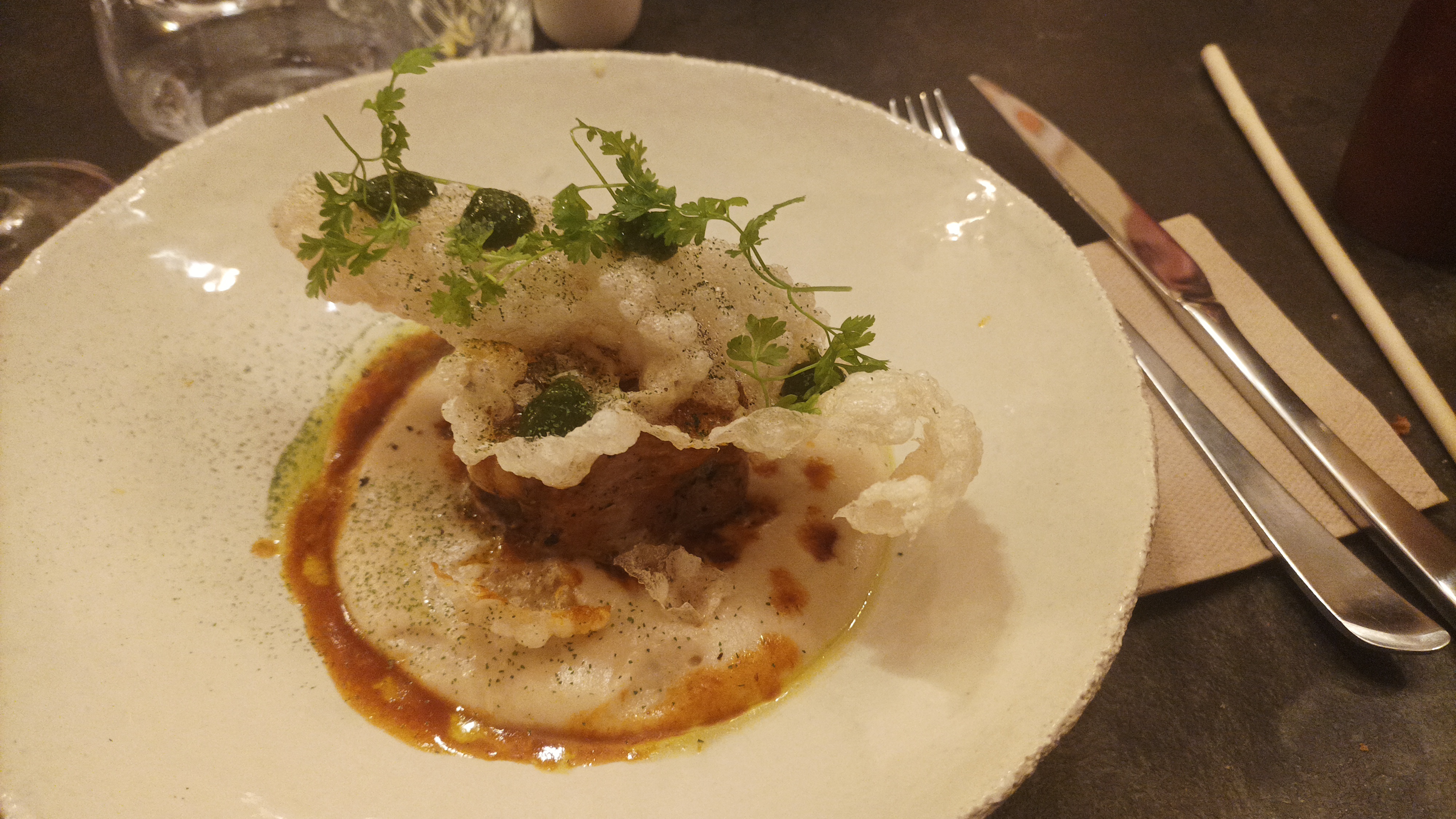 Excellente cuisine, bon jeu des saveurs et des textures. Bon rapport qualité/prix. Le dessert (trio de chocolats avec feuilleté) a été magnifique : peu sucré, faisant ressortir les différentes textures de chocolat (et pourtant, je n'aime pas trop le chocolat !), un des meilleurs desserts que j'ai pu déguster. Petit bémol sur les sièges qui ne sont pas assez confortables pour ce genre de lieu très prometteur.
