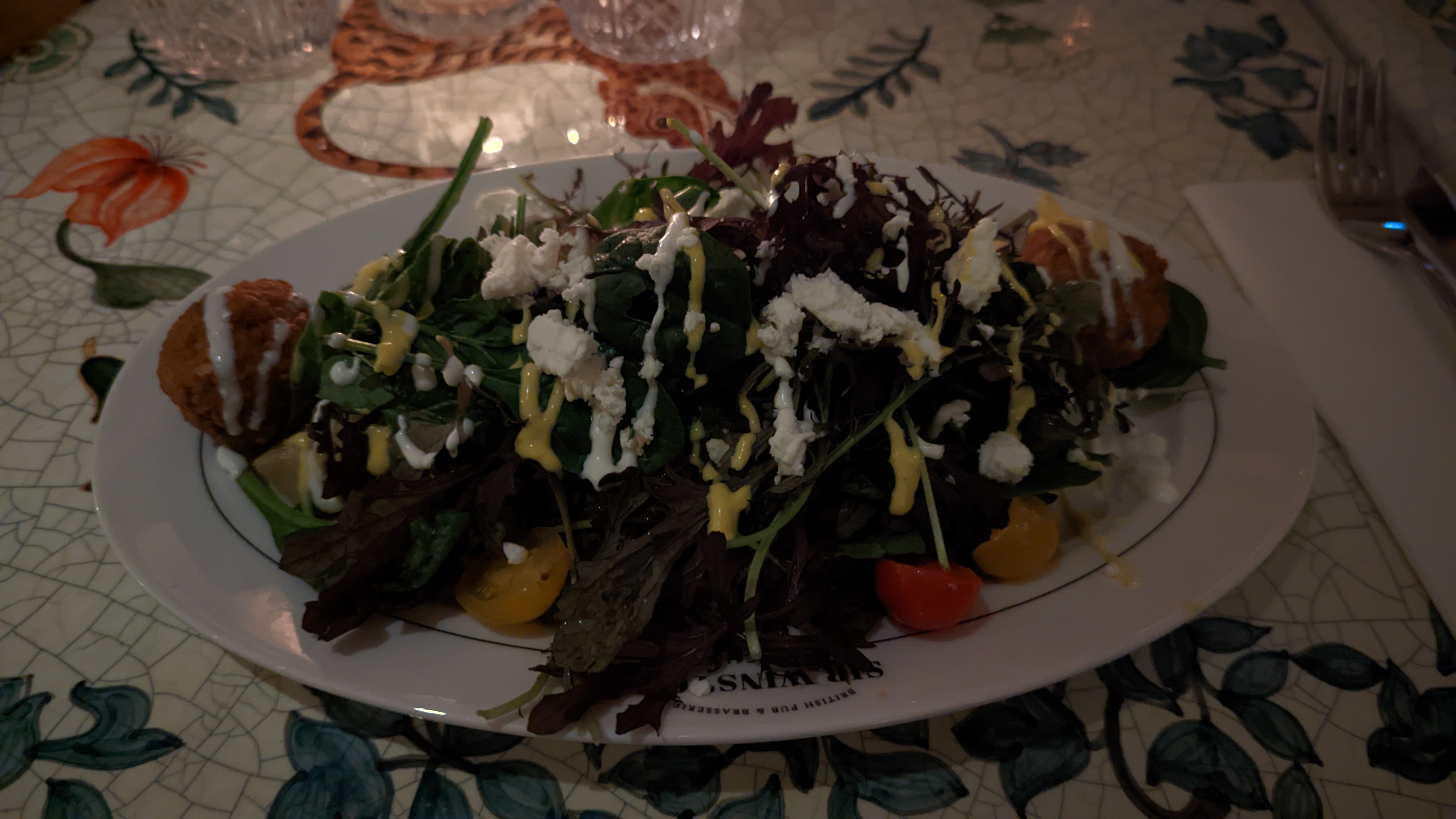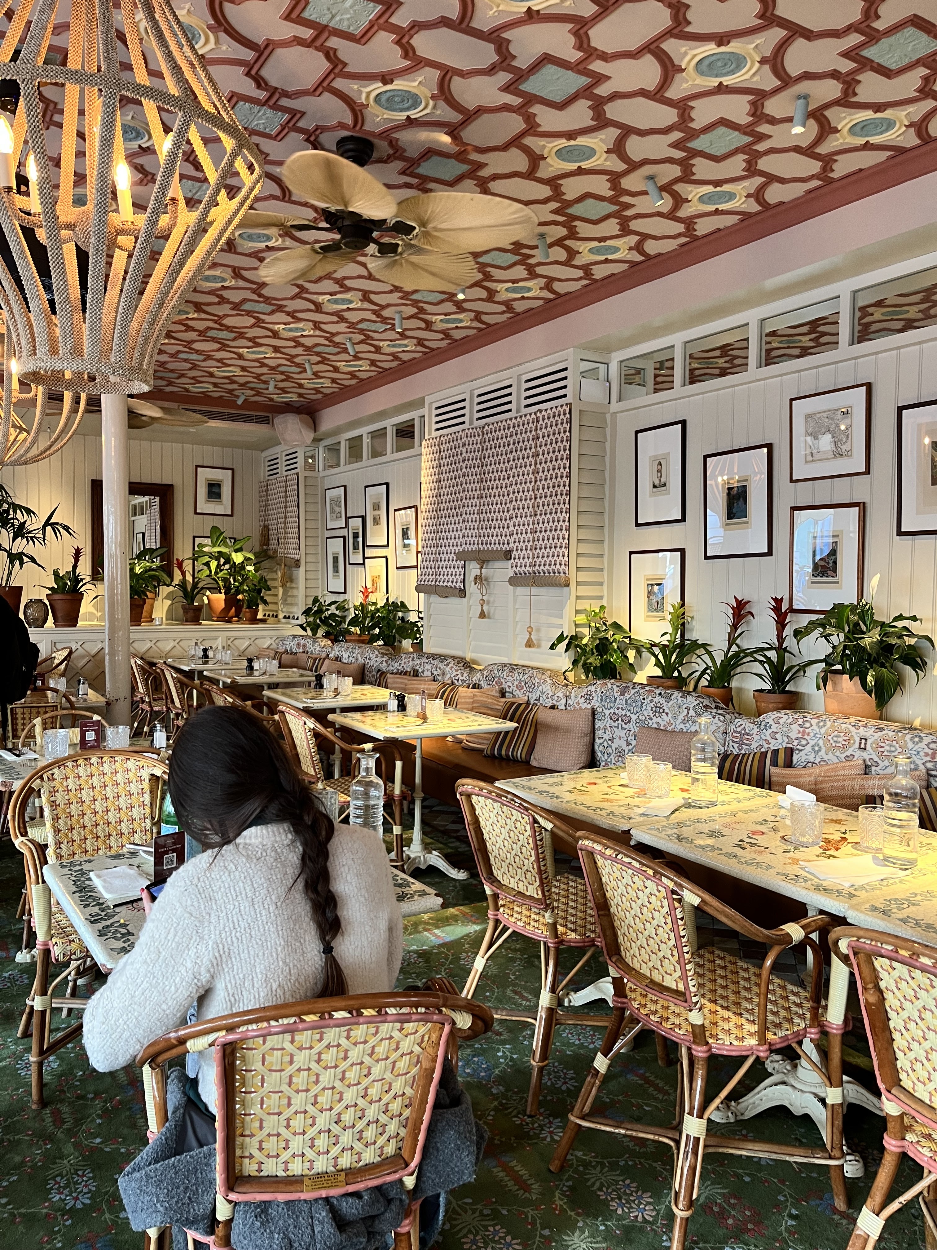 Le restaurant a un beau charme victorien, plein de plante et de luminaires. J'ai passé un bon moment avec des collègues.