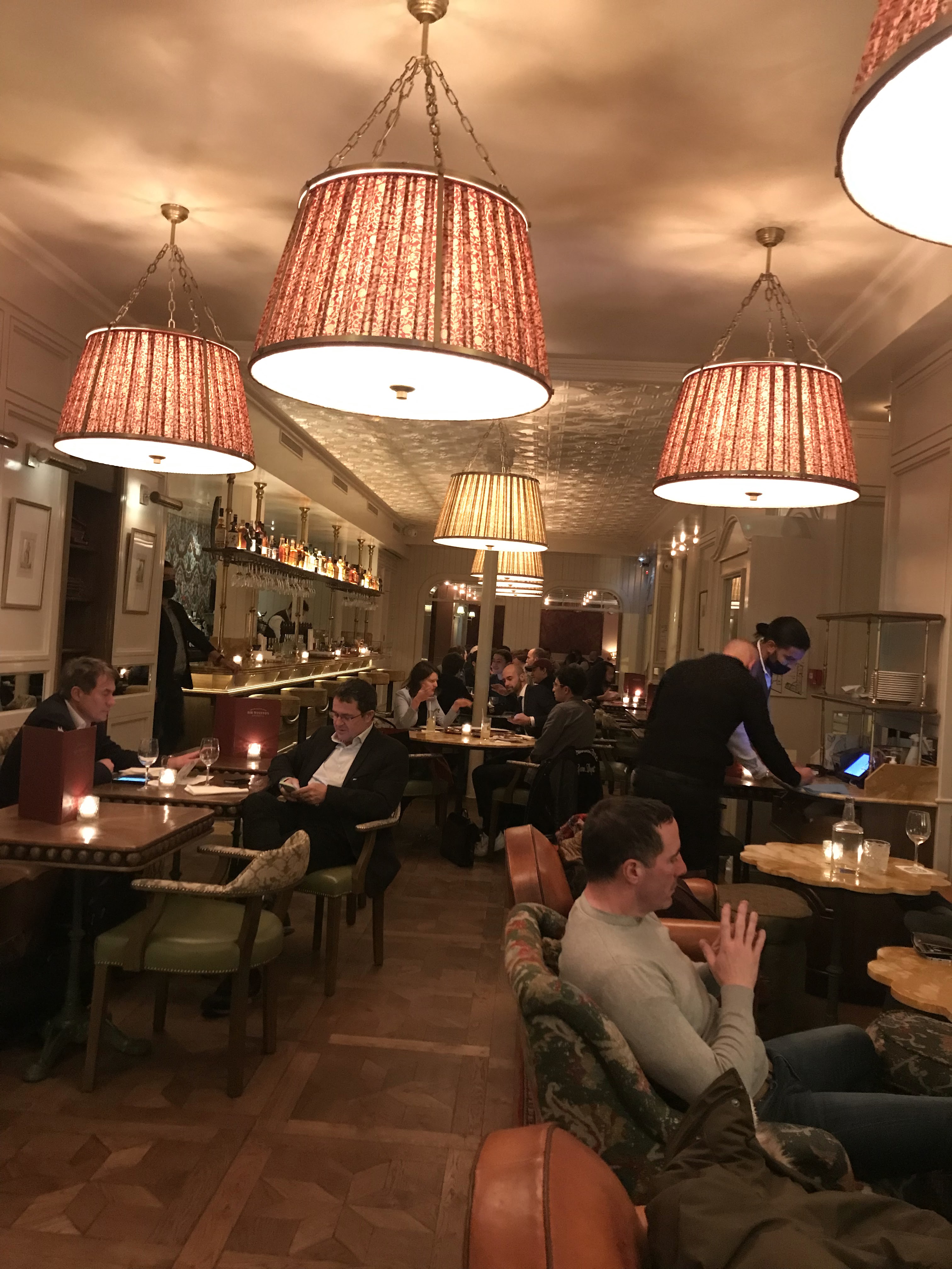 Bel établissement haut de gamme avec une ambiance très élégante. Je viens de m'arrêter pour prendre quelques verres et me protéger de la pluie après avoir visité l'Arc de Triomphe. Ils ont un deuxième bar confortable en bas qui dégage une atmosphère de pub beaucoup plus classique mais qui n'était malheureusement pas ouvert lors de ma visite. J'ai dû laisser une étoile à cette critique uniquement en raison de la lenteur du service. Le personnel passe vraiment trop de temps à discuter entre eux. Même après s'être assis avec des verres vides et avoir demandé la facture, ils ont parlé pendant encore cinq minutes avec ma facture entre les mains.