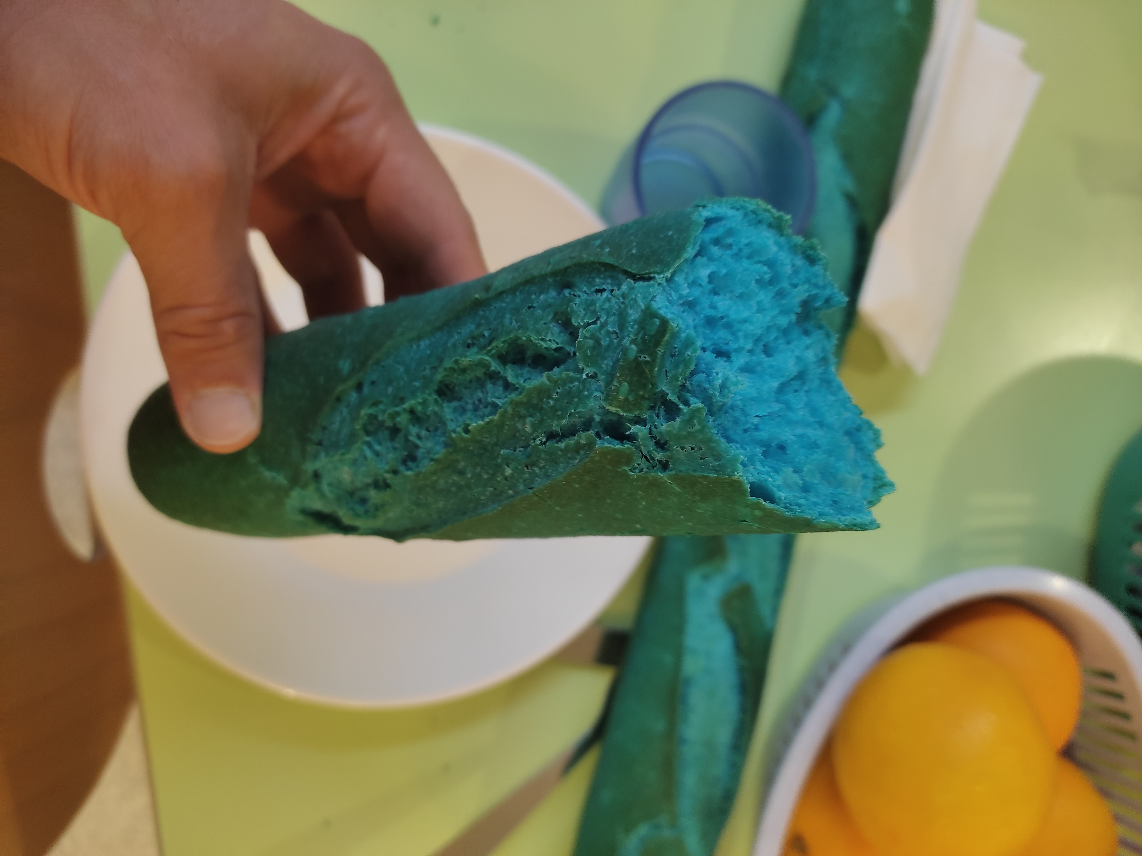 Du pain et des choux fleurs bourrés de colorants pour créer un menu spécial rouge. Quel est l'intérêt ? Et comment éduquer nos enfants à mieux manger si on trouve à la cantine du pain rouge ou des saucisses bleues ? Ridicule.