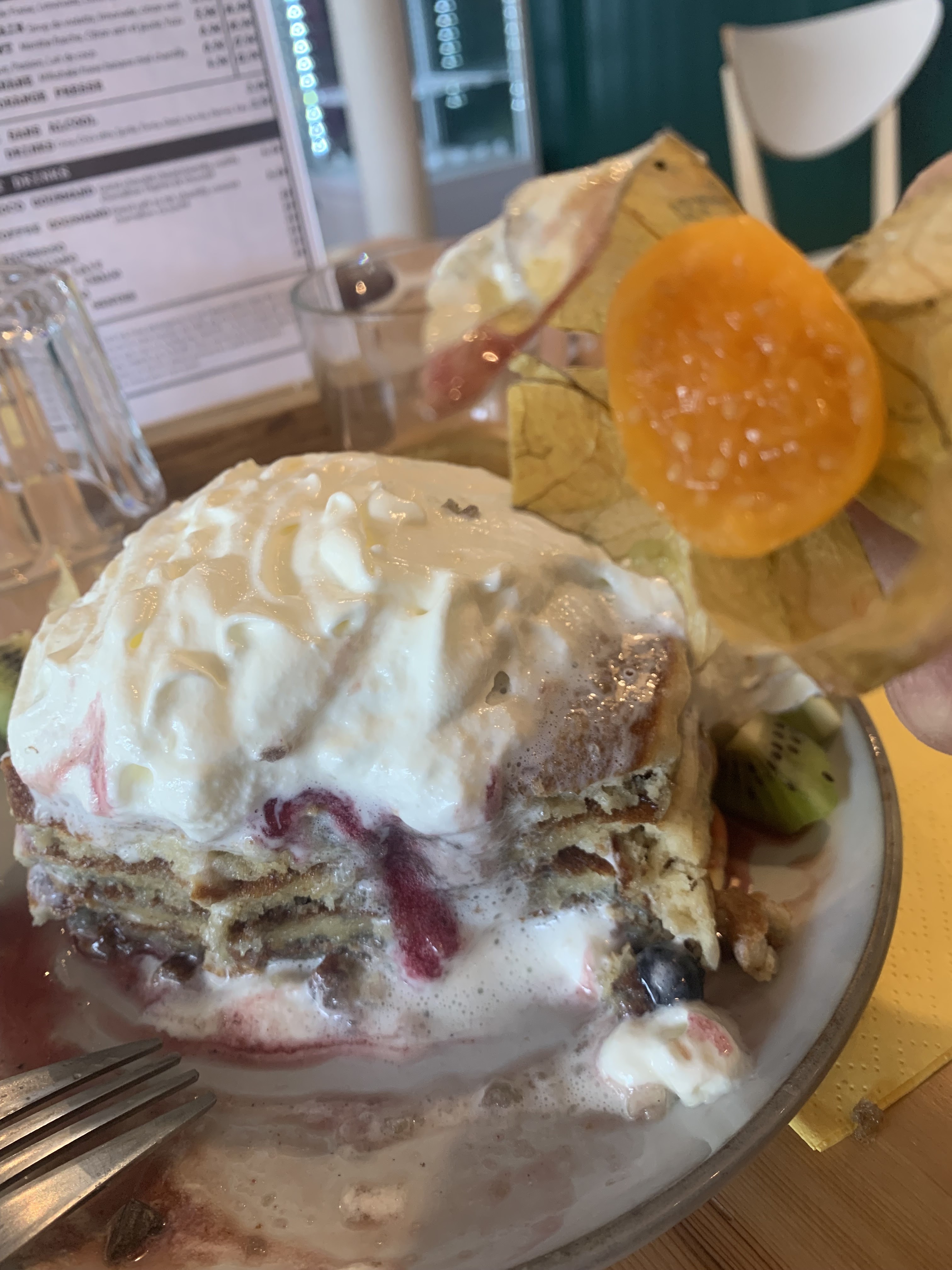 Très beau concept. Les plats à la carte sont orignaux. J’ai choisi ce mille feuilles de pancakes avec ses accompagnements… super bon! Je recommande ce restaurant pour les fans de brunch.