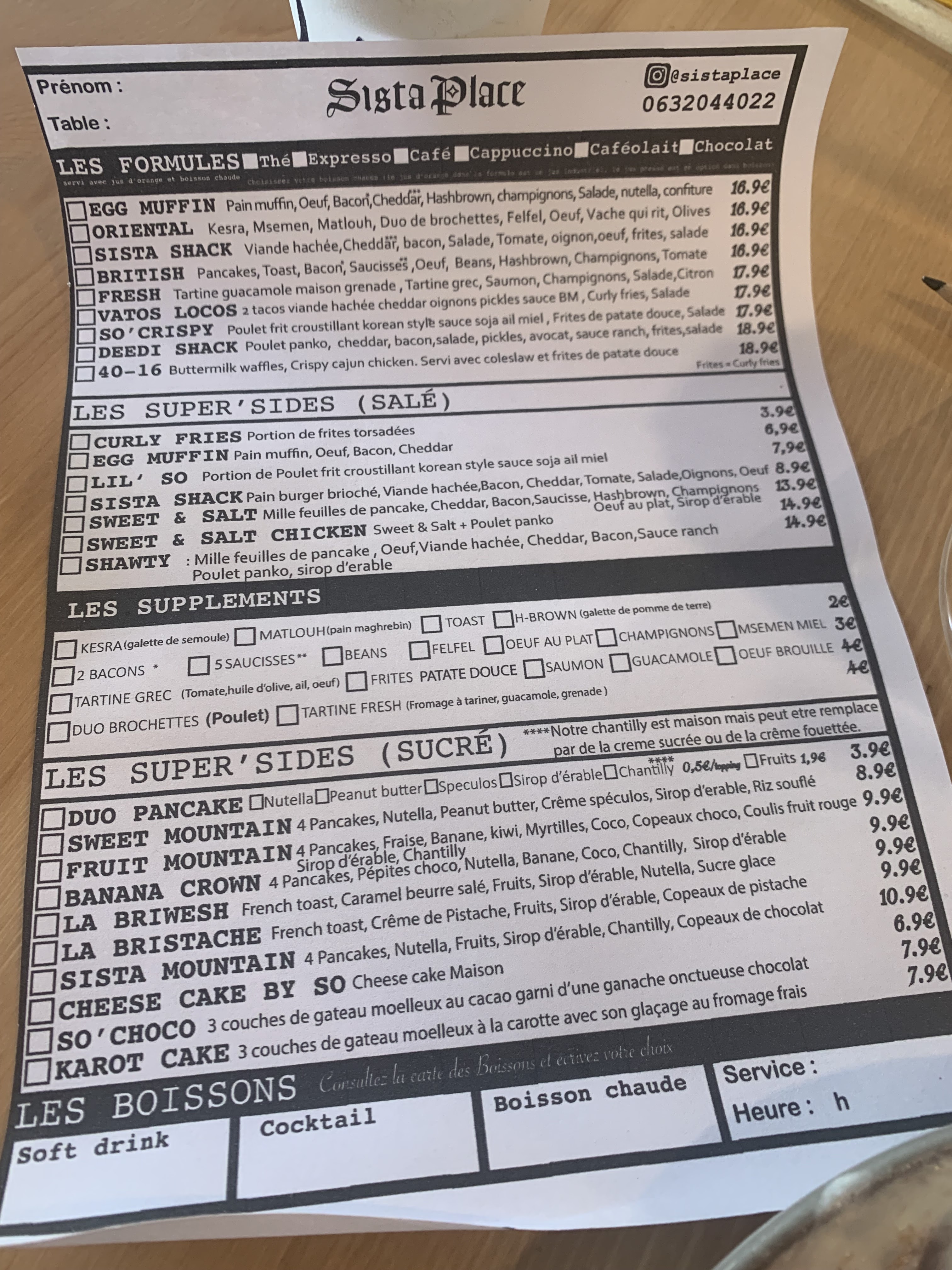 2eme fois chez sistaplace et toujours un régal, très bonne idée d'avoir ouvert un brunch dans le coin, c'est ce qu'il manquait