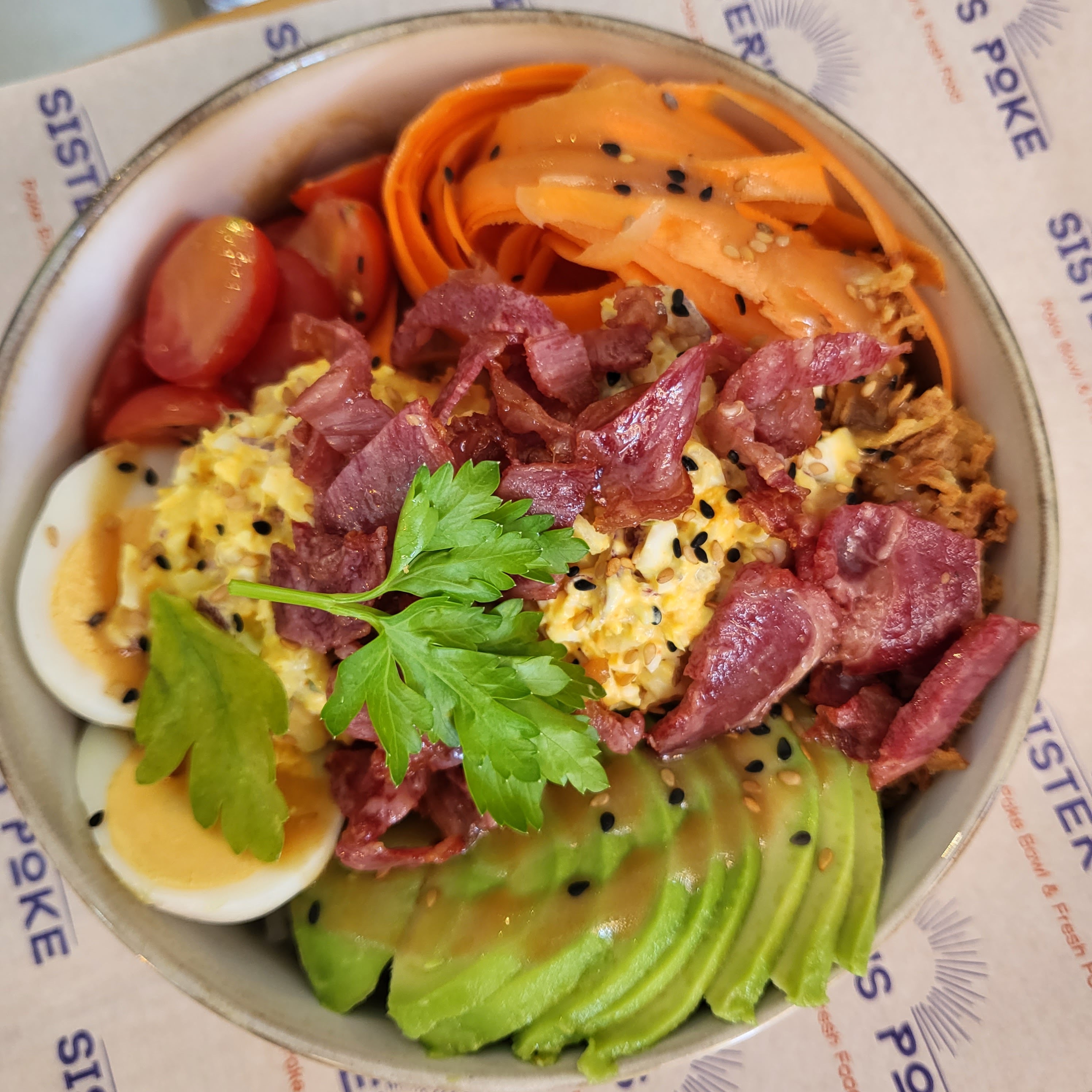 Je recommande Sister's Poke. Les plats sont sains et savoureux. Ni trop lourds, ni trop légers. Les produits sont frais. Le personnel est accueillant. Il y a aussi des pokebowls vegans, et d'autres avec de la viande halal.