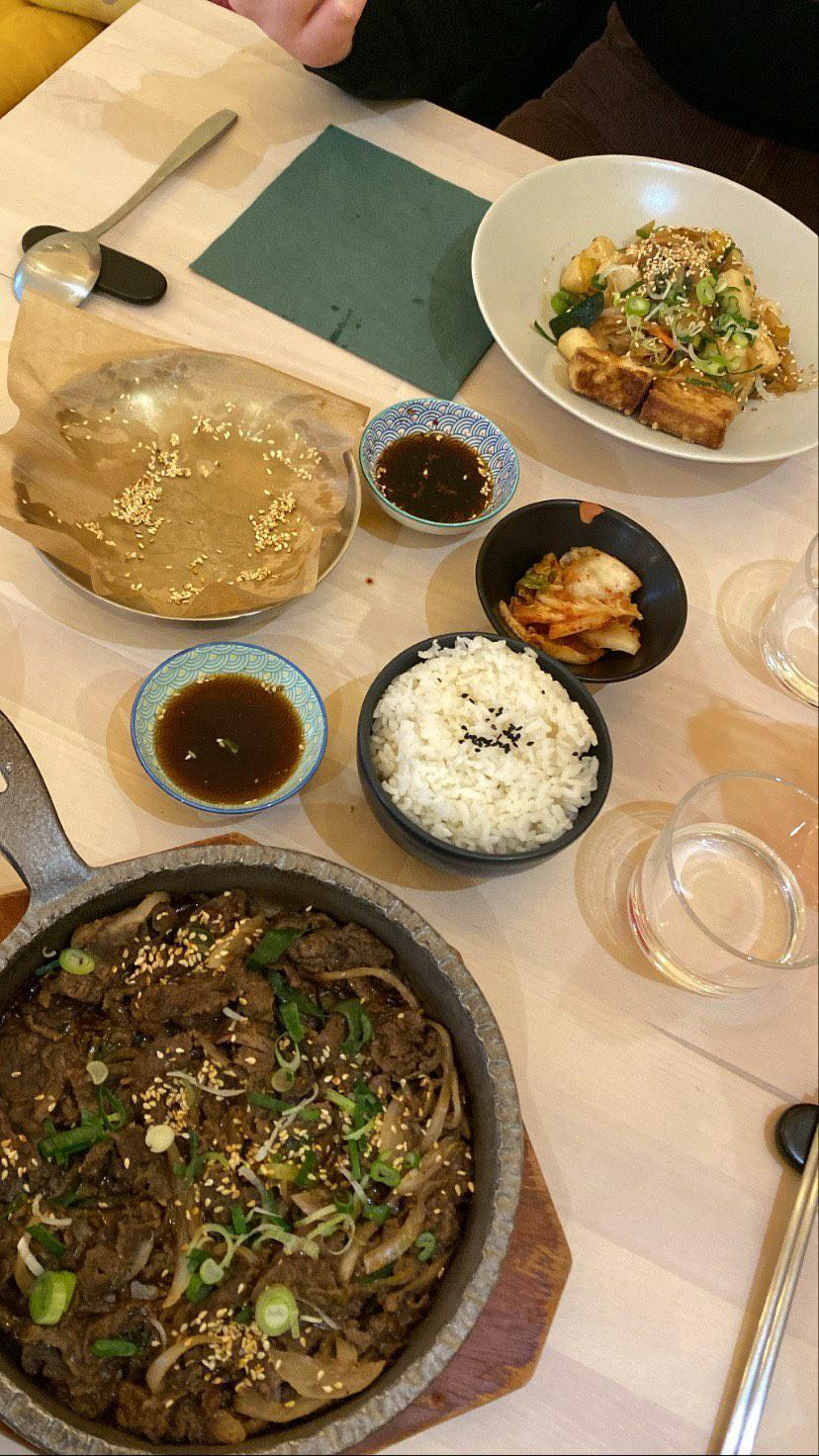 Délicieux, très bon bibimbap, la soupe aux algues froide était bonne ainsi que le kimchi ! Et pour terminer en dessert le pancake était la cerise sur le gâteau. Prix raisonnable, et très bon rapport qualité prix. Je recommande :)