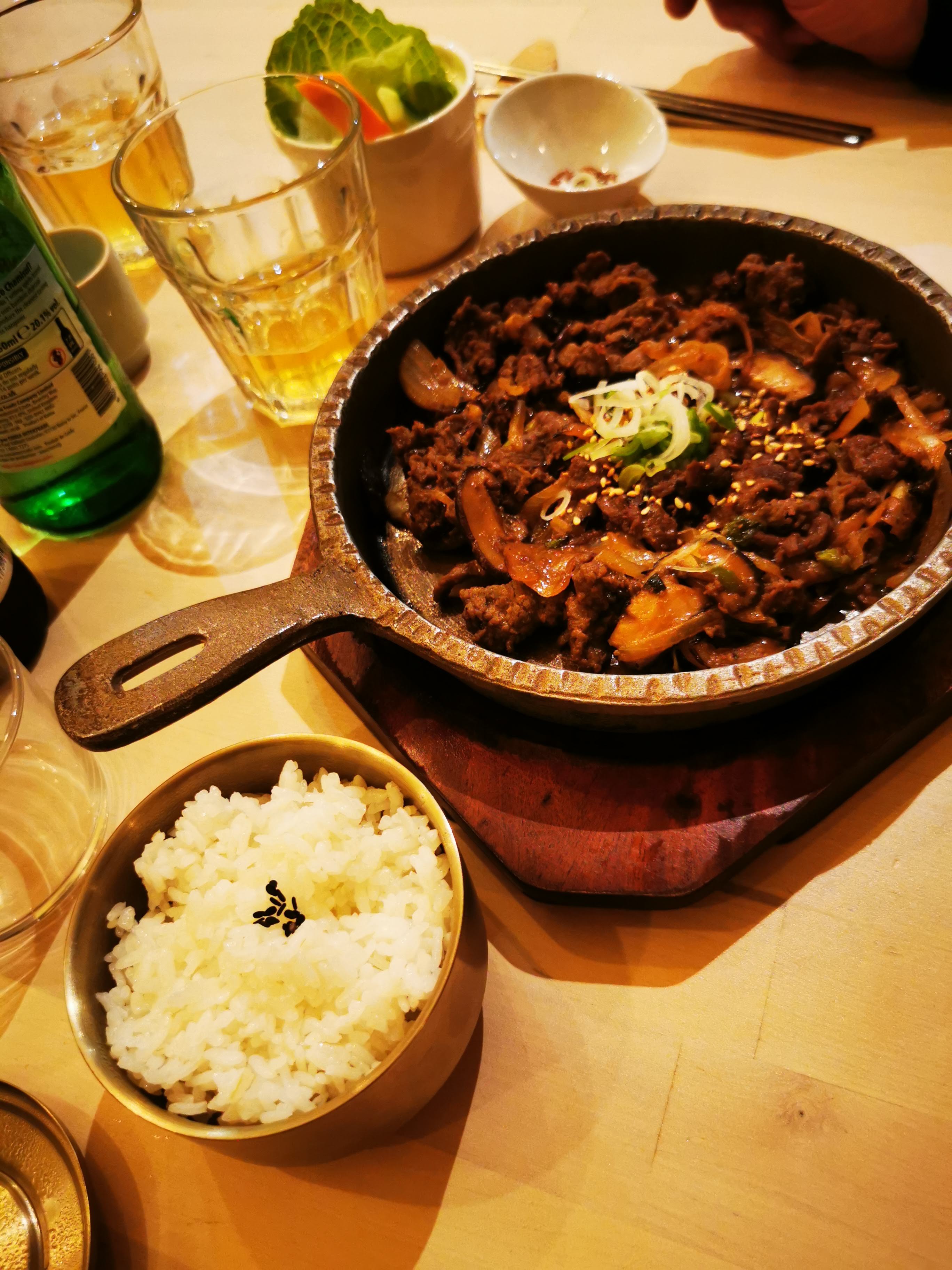 Déjà la deuxième fois que je dine dans ce restaurant et j'en sors toujours très conquise. Les boissons proposés sont aussi coréennes ce qui pousse l'immersion plus loin. La liqueur de prune une tuerie. Prix abordable.