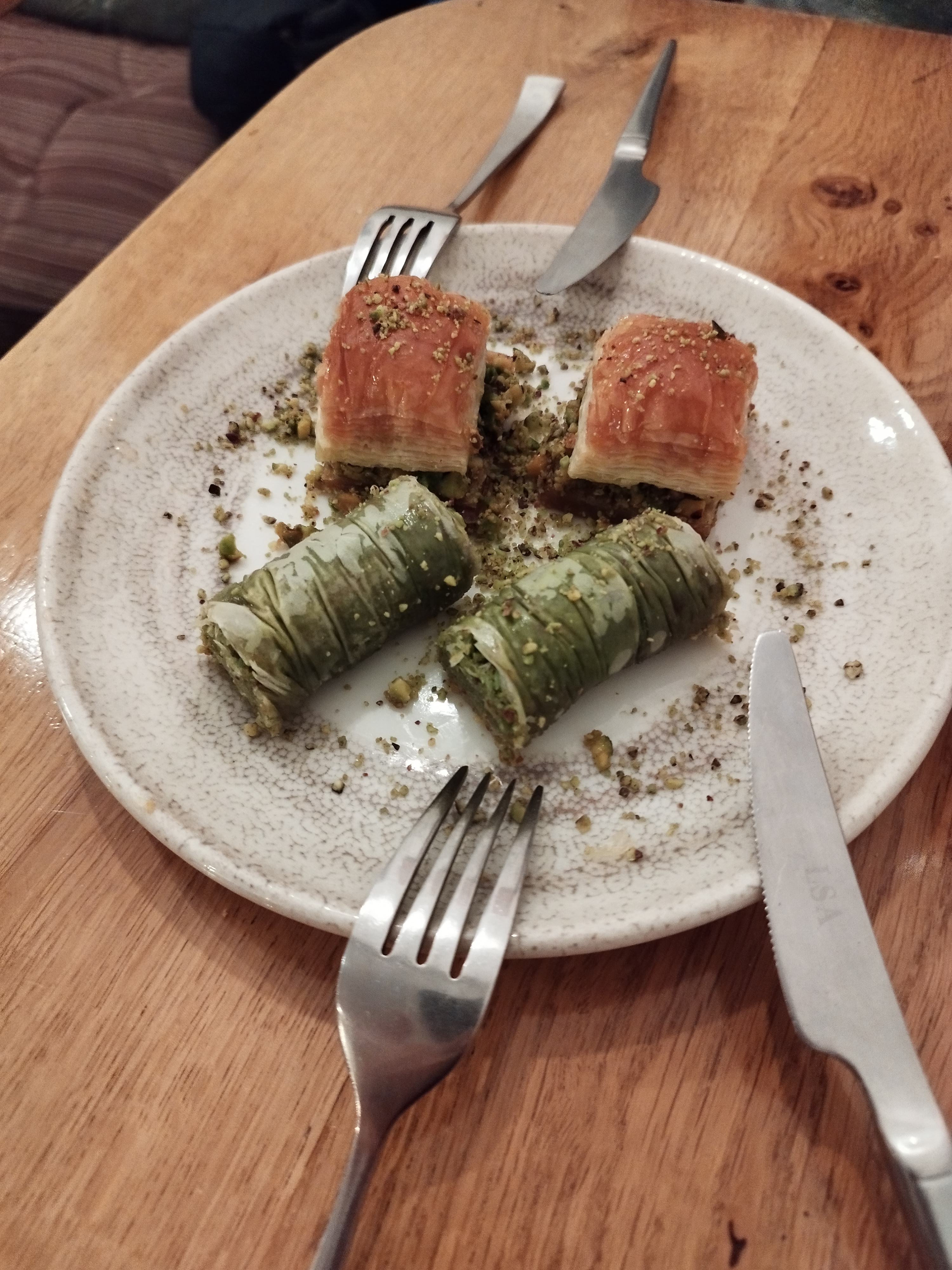 Service hypra-gentil et rapide. Mezze froid, fin mais copieux et servi avec un très bon pain. Assortiment de pâtisseries, pas trop sucrées avec un thé turc nature pour finir. Prix raisonnables. Je recommande.