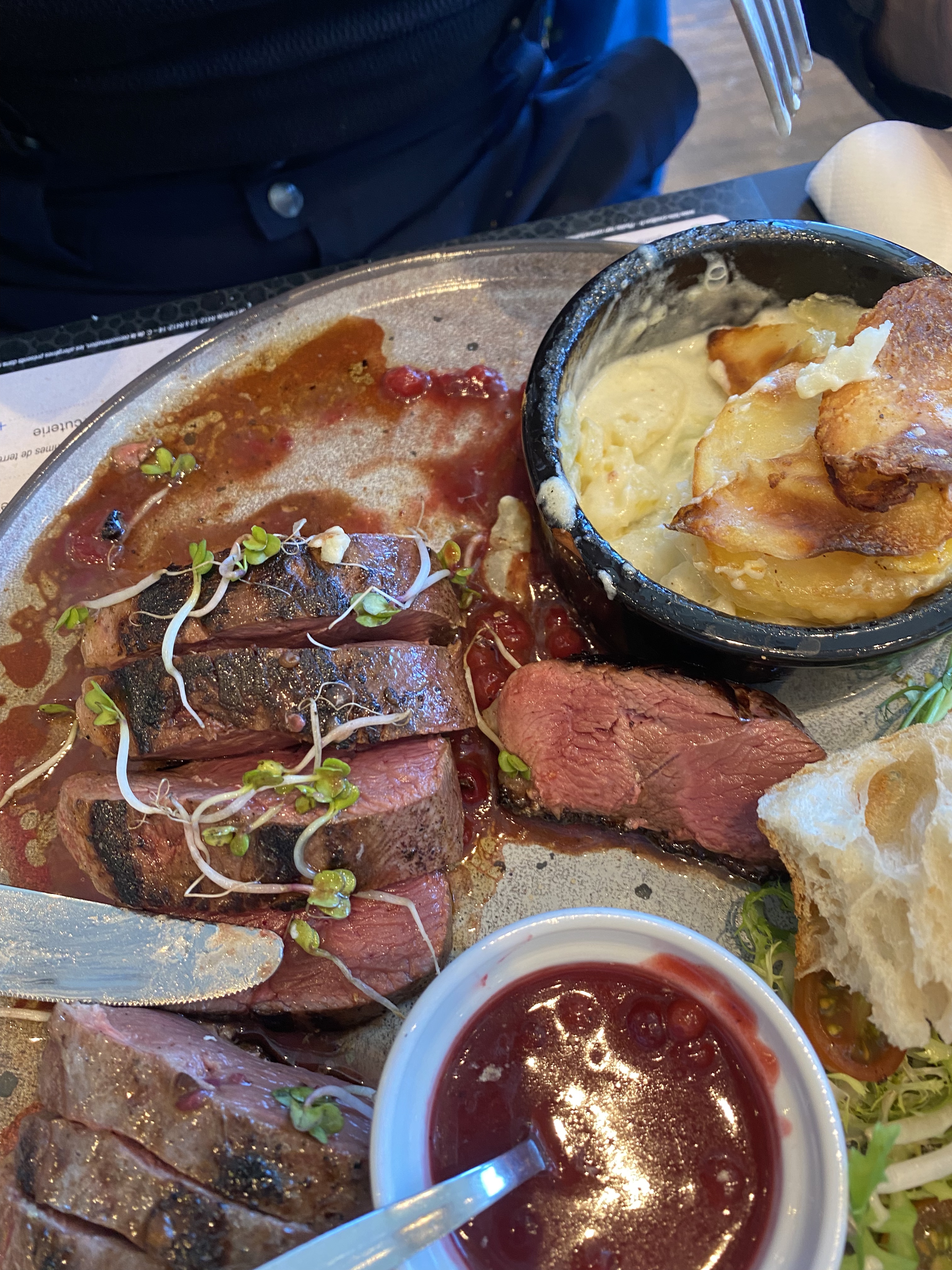 Superbe découverte, autant culinaire que humaine. Un cadre très sympathique, une déco très agréable. De l'espace entre les tables afin de préserver l'intimité. Une carte qui propose des mets typiques de la montagne et à des prix carrément abordables par rapport aux concurrents sur Courchevel 1850. Le personnel est au top, souriant et attentifs. Nous reviendrons très vite 👍 Bravo à tous.