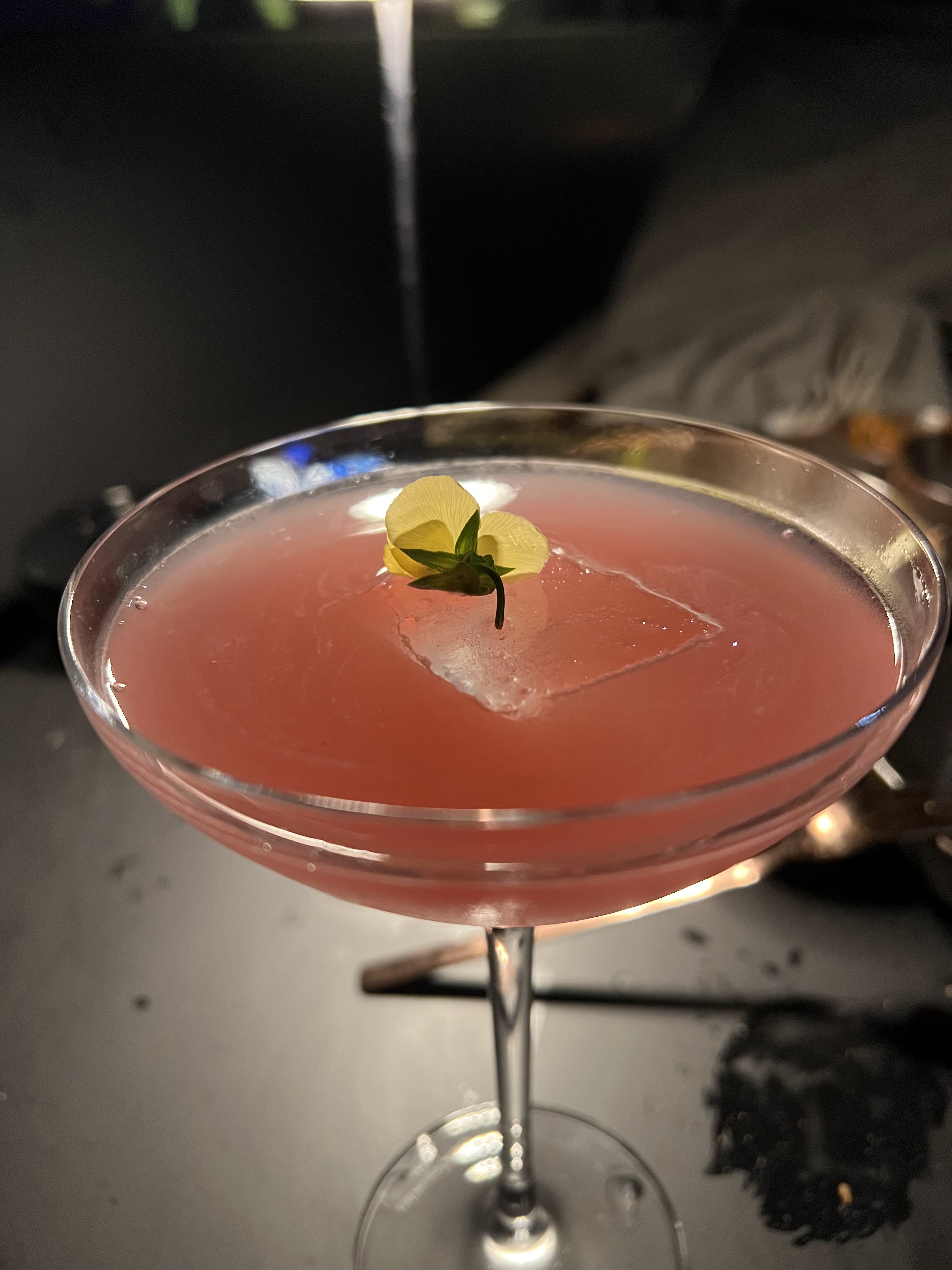 Pour résumé : la honte… Avant d’accéder au bar, vous devez faire connaissance avec la gentille dame qui vous accompagne pour prendre l’ascenseur. D’abord, on nous a fait patienter au lobby de l’hôtel, en disant « nous sommes complets ». Après 10-15 minutes d’attente, on prend l’ascenseur et monte au 32e étage. Tout de suite il y a une autre gentille dame qui vous accueille et là vous vous rendez compte qu’il y a à peine 10 personnes… Une façon étrange de se faire désirer. Je joints la photo de mon « cocktail », appelé « cherry cherry » quelque chose. Pour tout vous dire, c’était le glaçon le plus cher de ma vie. J’ai eu un énorme cube de glaçon à 21 euros. Tout ça sans vous dire que le cocktail n’était pas bon du tout. Il faut admettre que la vue est sympa.