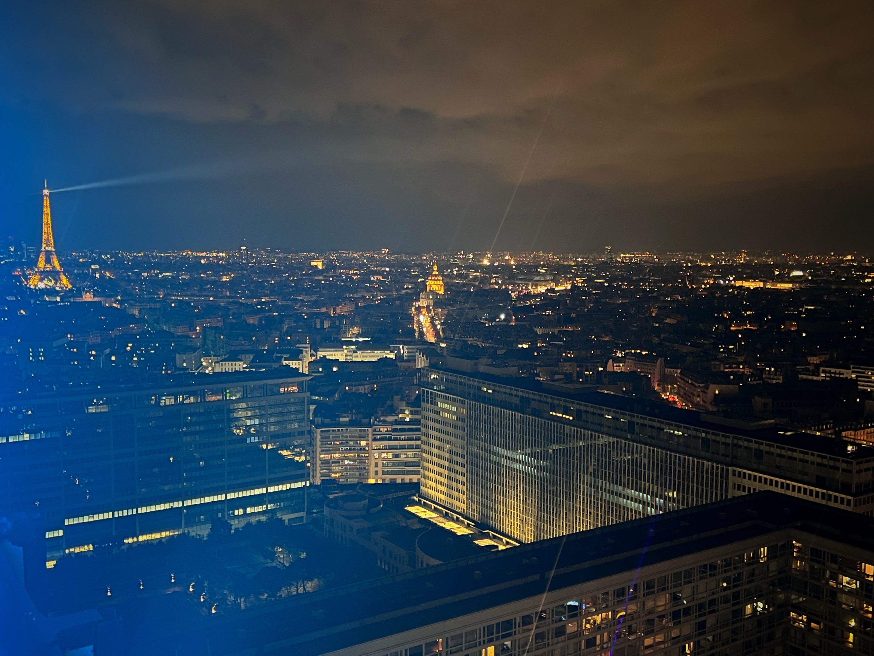 Superbe point de vue parisien à 180 degrés, de jour comme de nuit ! Cocktails et planchas pas donnés mais originaux et goutus, une bonne raison de savourer en profitant du paysage. Mention spéciale au personnel très pro, accueillant et serviable dès l'entrée dans l'immeuble jusqu'au service à table, tout particulièrement à Inès et Mari sans lesquelles la soirée aurait sûrement été moins reposante, encore merci ! À refaire !