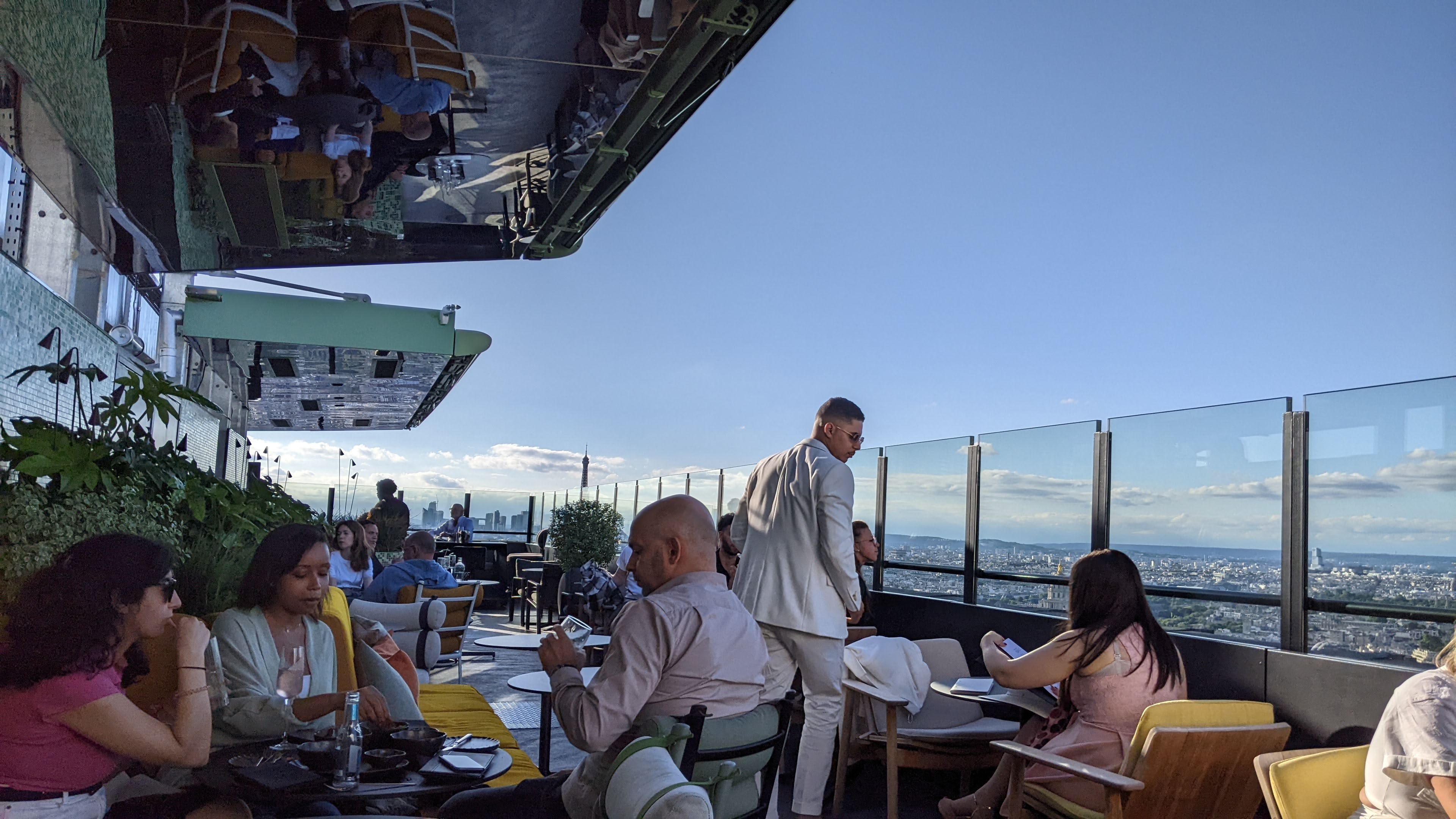Pour un Rooftop qui se prétend être sélect à l’entrée, l’accueil est plus que déplorable une fois l’entrée passée, je vous conseille d’aller subir la mauvaise humeur et l’extrême lenteur du service parisien dans un autre bar qui sera plus abordable et où la vue sur la Tour Eiffel ne sera pas obstruée.