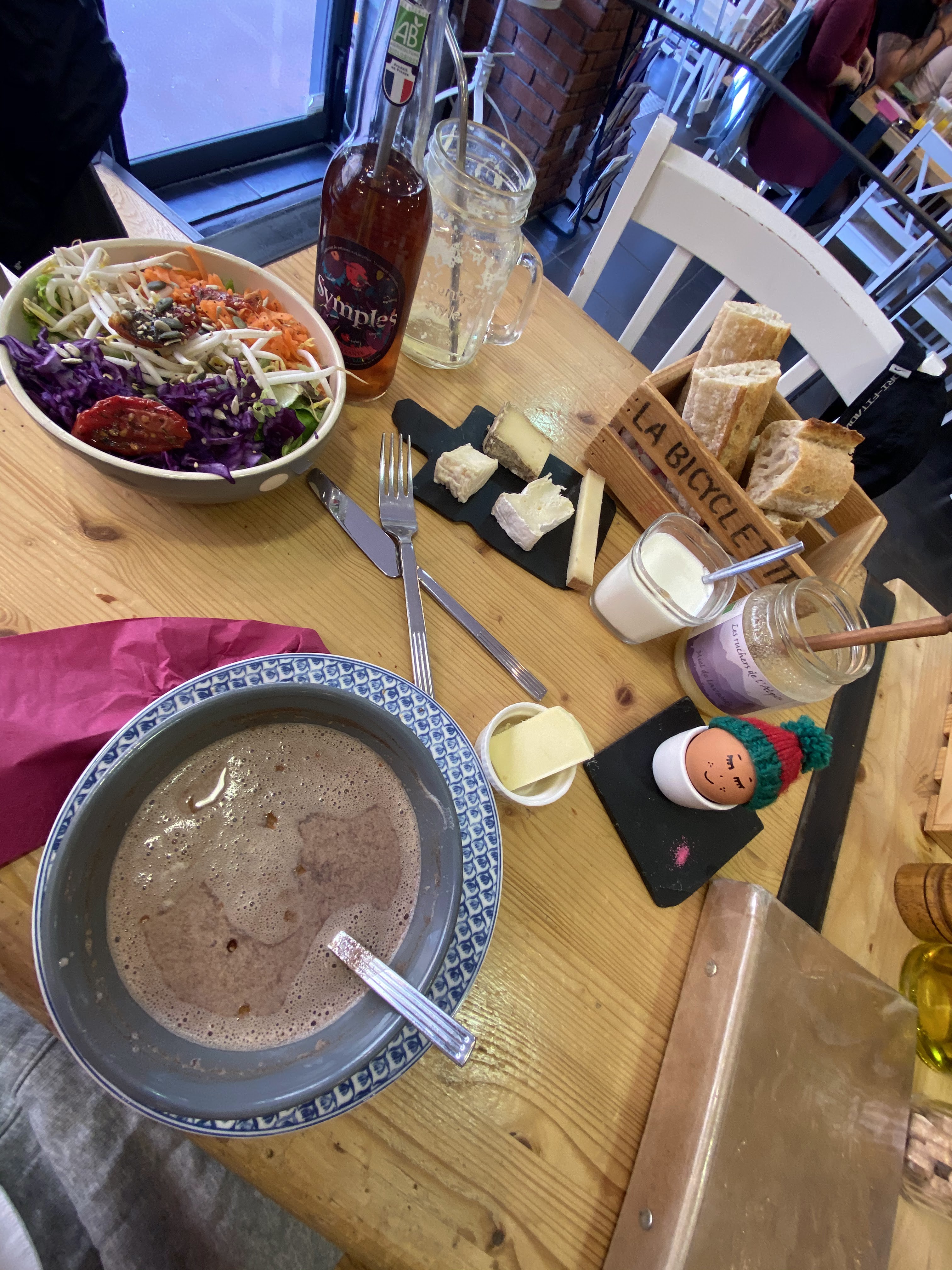Très bon brunch à la bicyclette rose. Très copieux pour 20€, on en ressort bien repus. Ils ont le soucis du détails de chaque présentation avec des produits locaux. Principe spécial de partager une grande table avec d’autres personnes mais idée plutôt sympa. Je recommande cette table dans le centre ville d’Annecy.