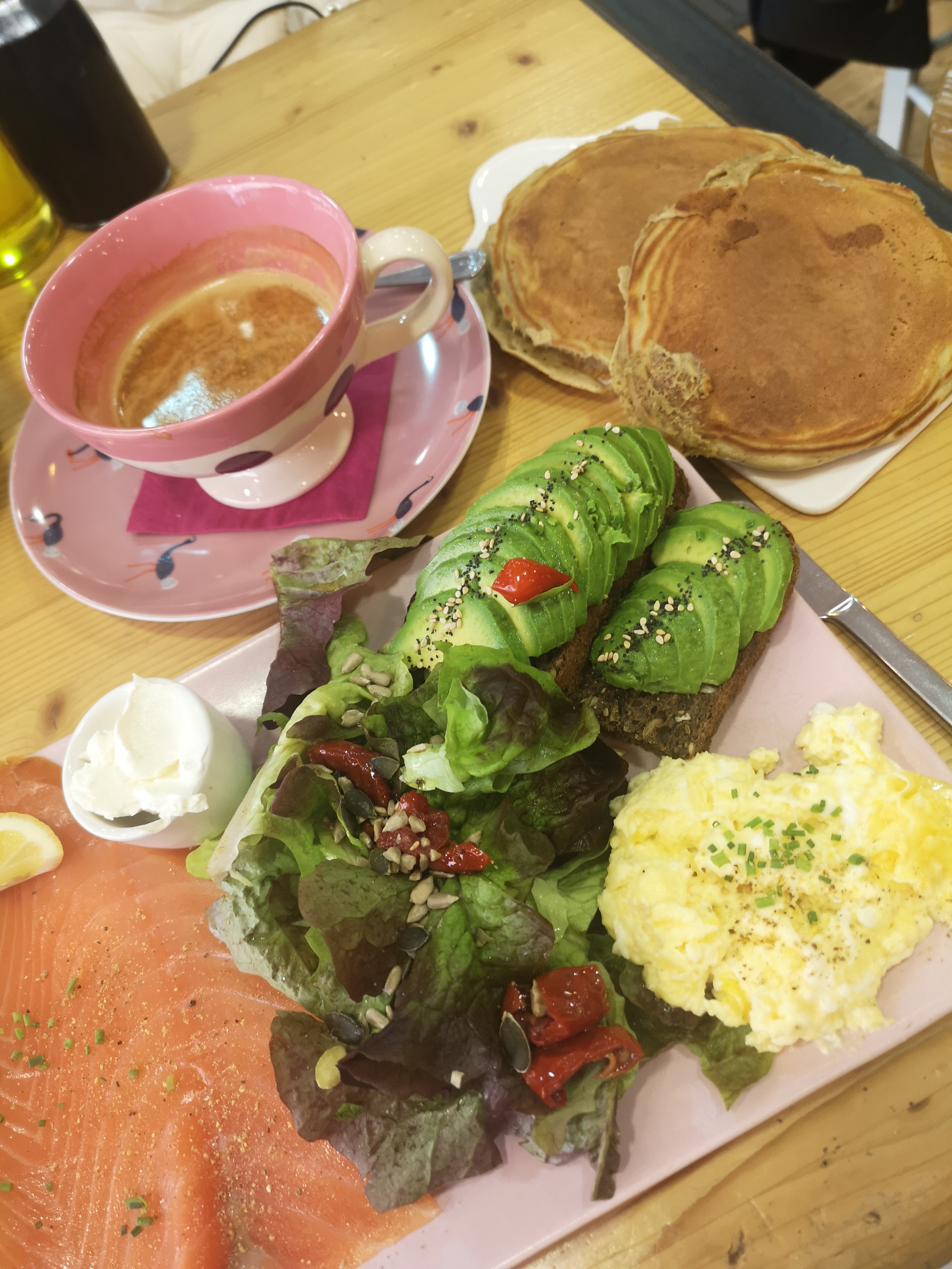 Super brunch à Slake avant un tour du lac à vélo ! 😎👌 Très bons plats et cafés. Pancakes délicieux, bel endroit, service rapide à 10h un samedi malgré l'affluence. L'assurance d'un bon brunch à Annecy avant de profiter de la journée :)