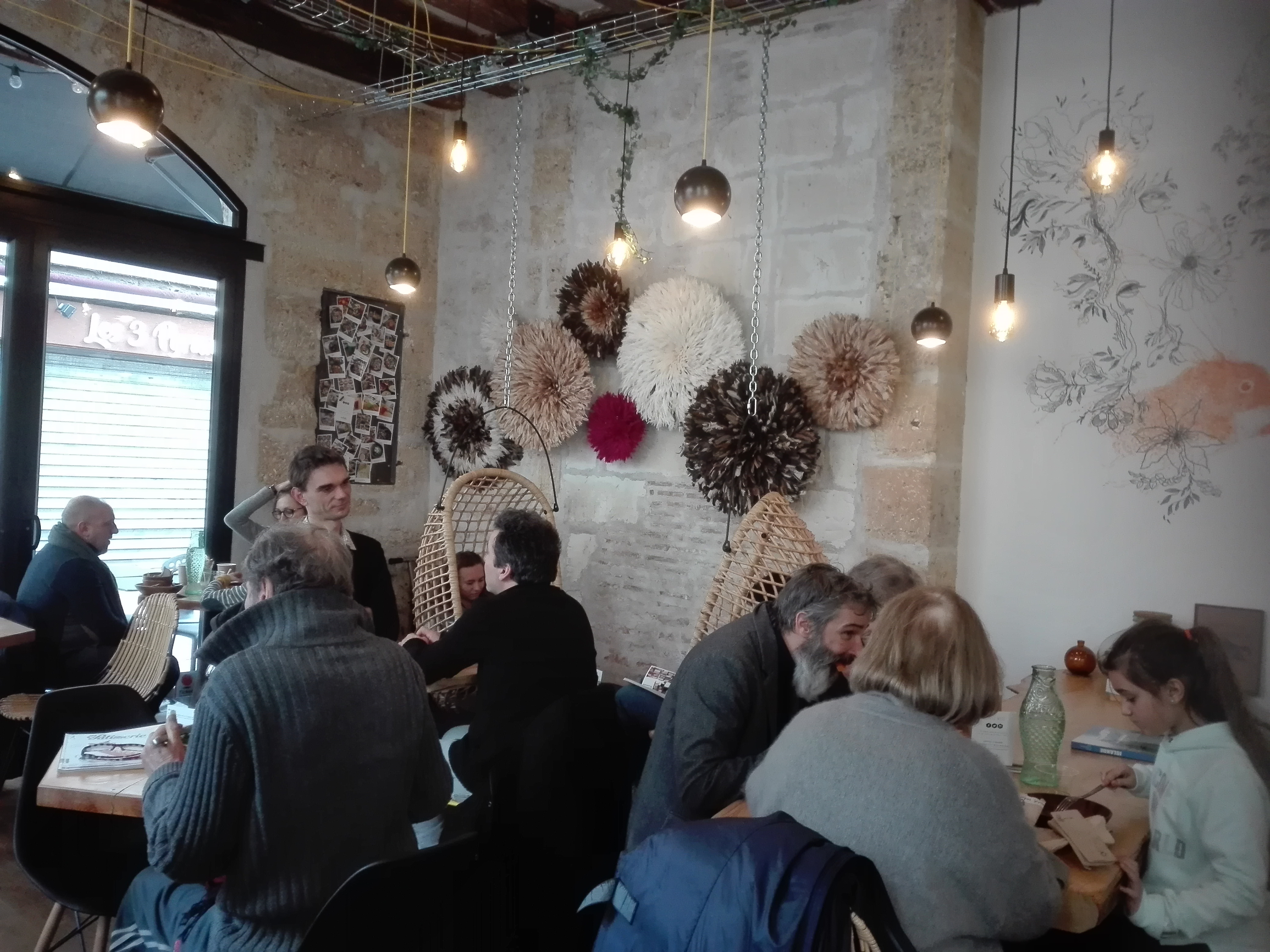 A part le fait de s'être fait mettre à la porte a 14h10 alors que l'établissement fermée à 14h30, on y a très bien mangé. Le lieu est sympa, le serveur est sympa....mais nous proposer de prendre le dessert et d'aller le manger ailleurs..! Franchement incroyable. Jamais vu ça.