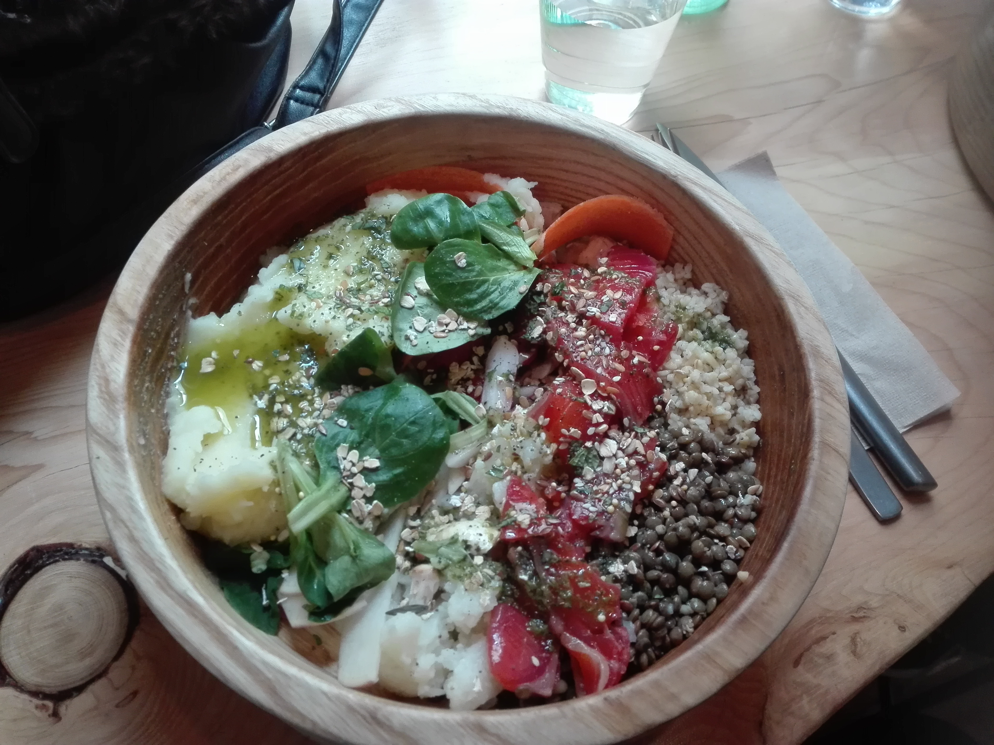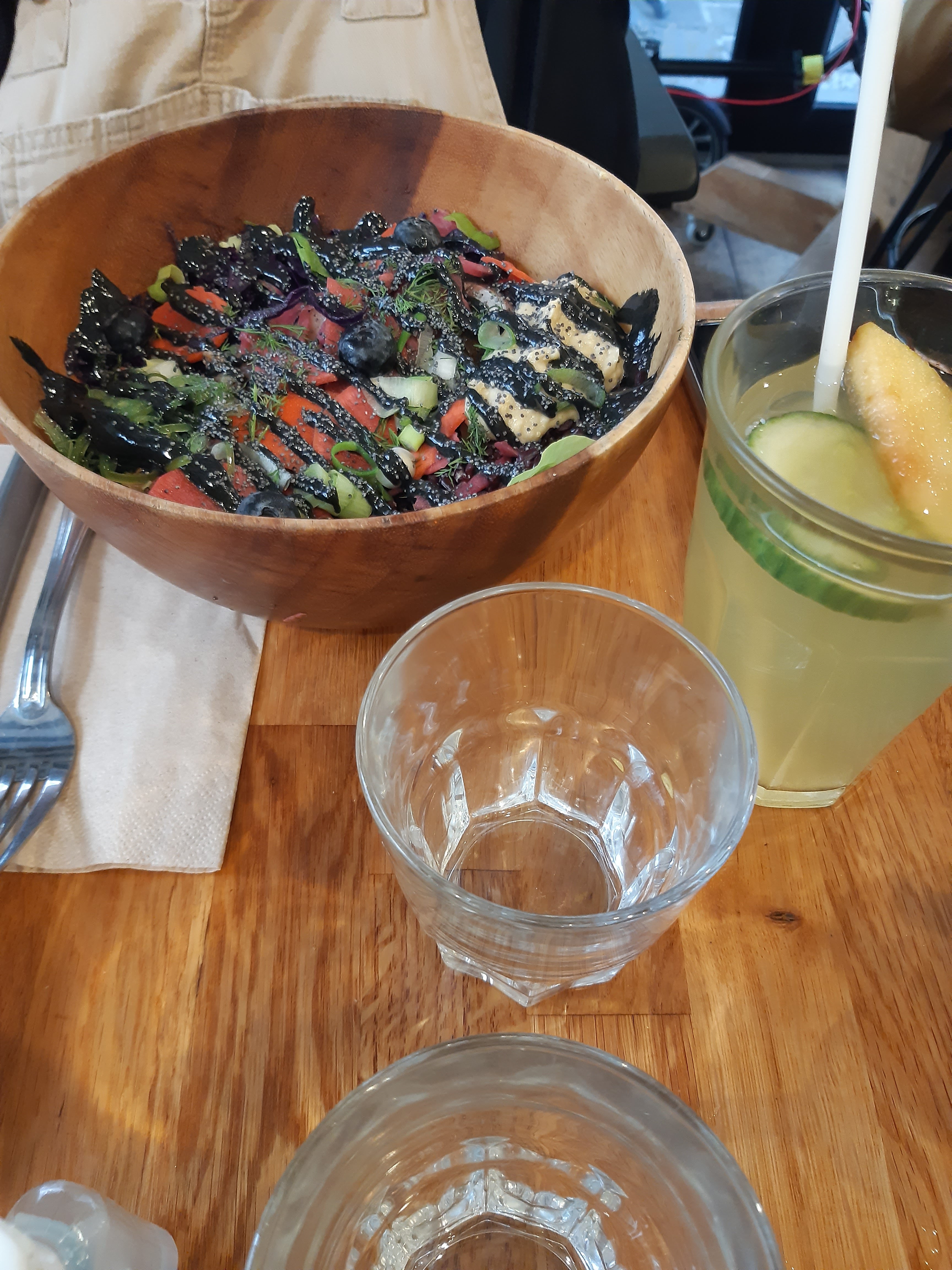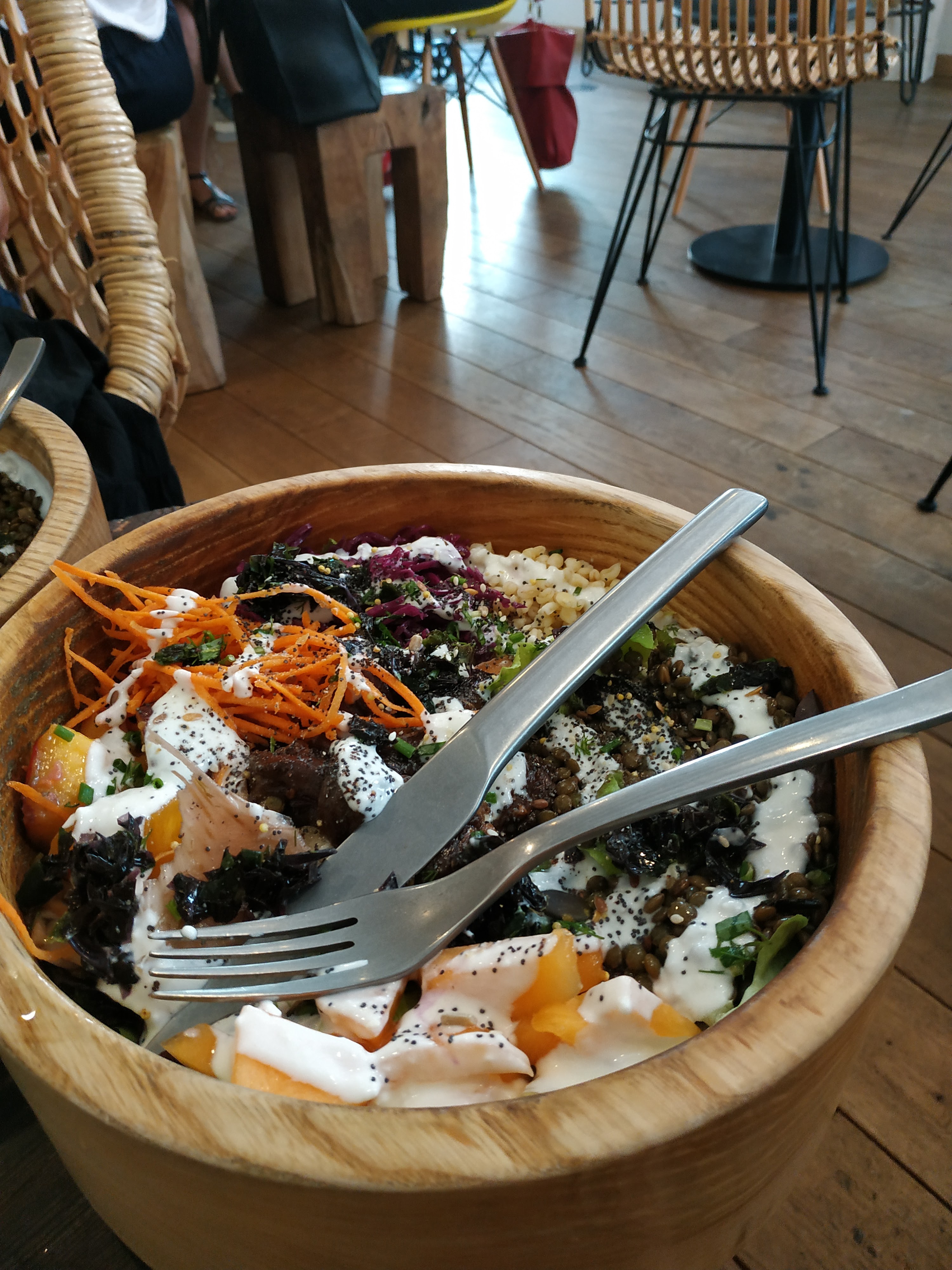 J'adore, aussi bien la nourriture saine avec des produits de saison, que la déco chaleureuse. On se sent très bien, le service est excellent, personnes souriantes et a l'écoute. Pour ma part j'ai pris un solid bowl avec une recette personnalisée et c'était délicieux et copieux ! Je recommande à tous les amateurs de healthy et de produits frais.