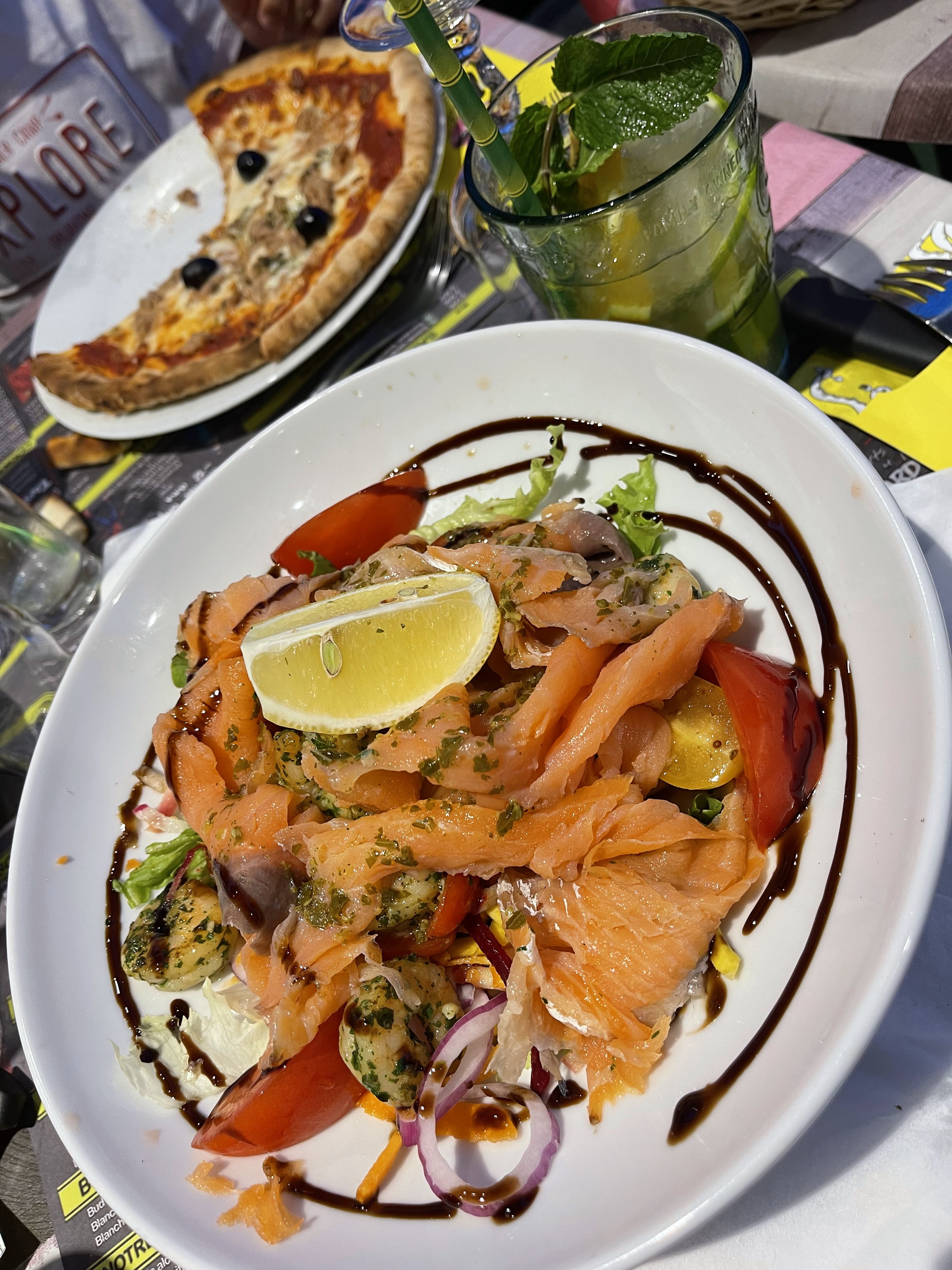 Comment dire, bonne accueil mais attrape touristes finalement, les plats ne sont pas bons , crevettes décongelé aucun gout , pizza fade , prix élevé et invasion d'abeille impossible de manger tranquillement, certaines personnes fume à côté de vous en mangeant, bref je ne recommande pas.