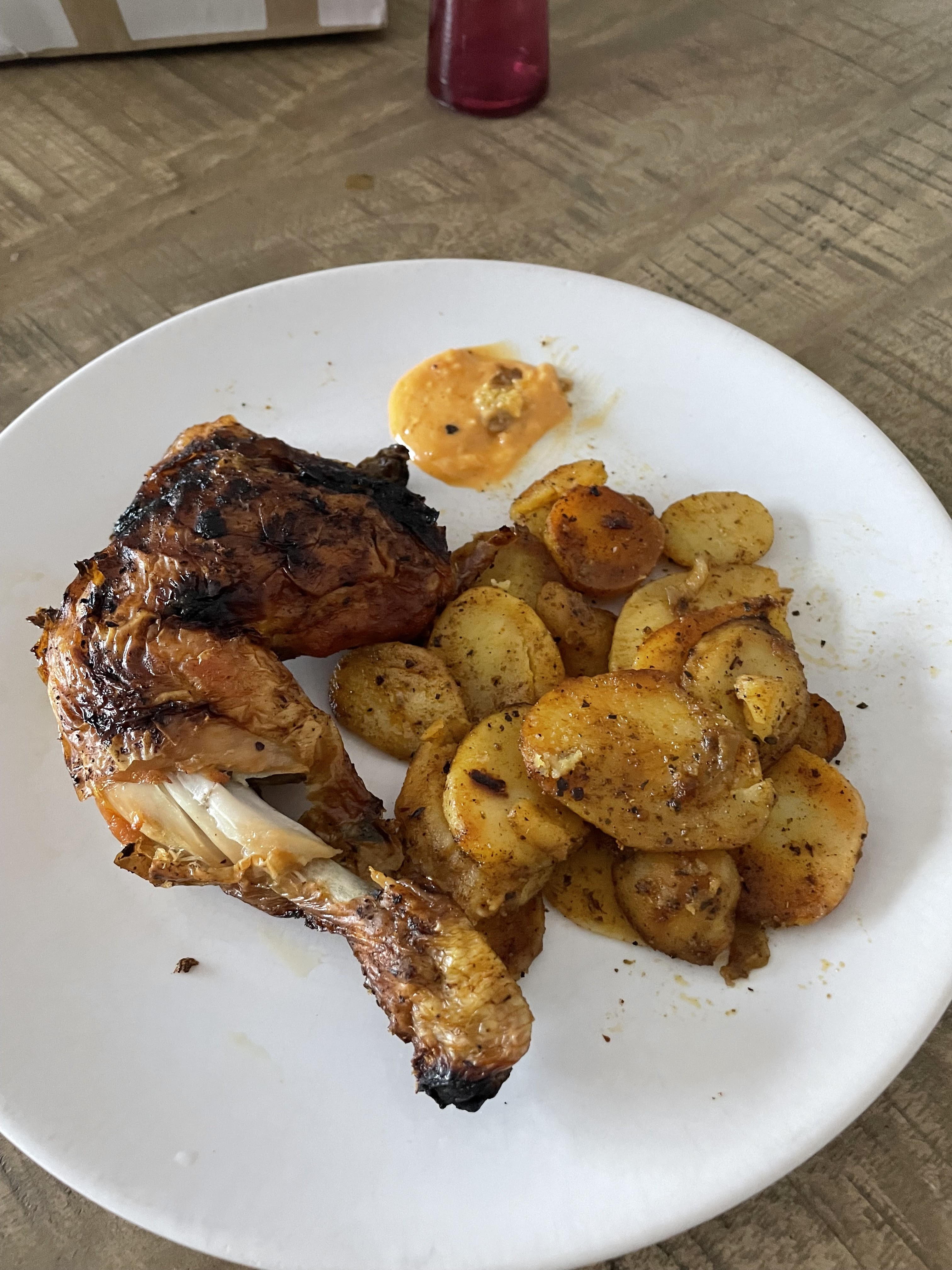 Poulet cramé tout est parti a la poubelle vraiment pas serieux de servir ca