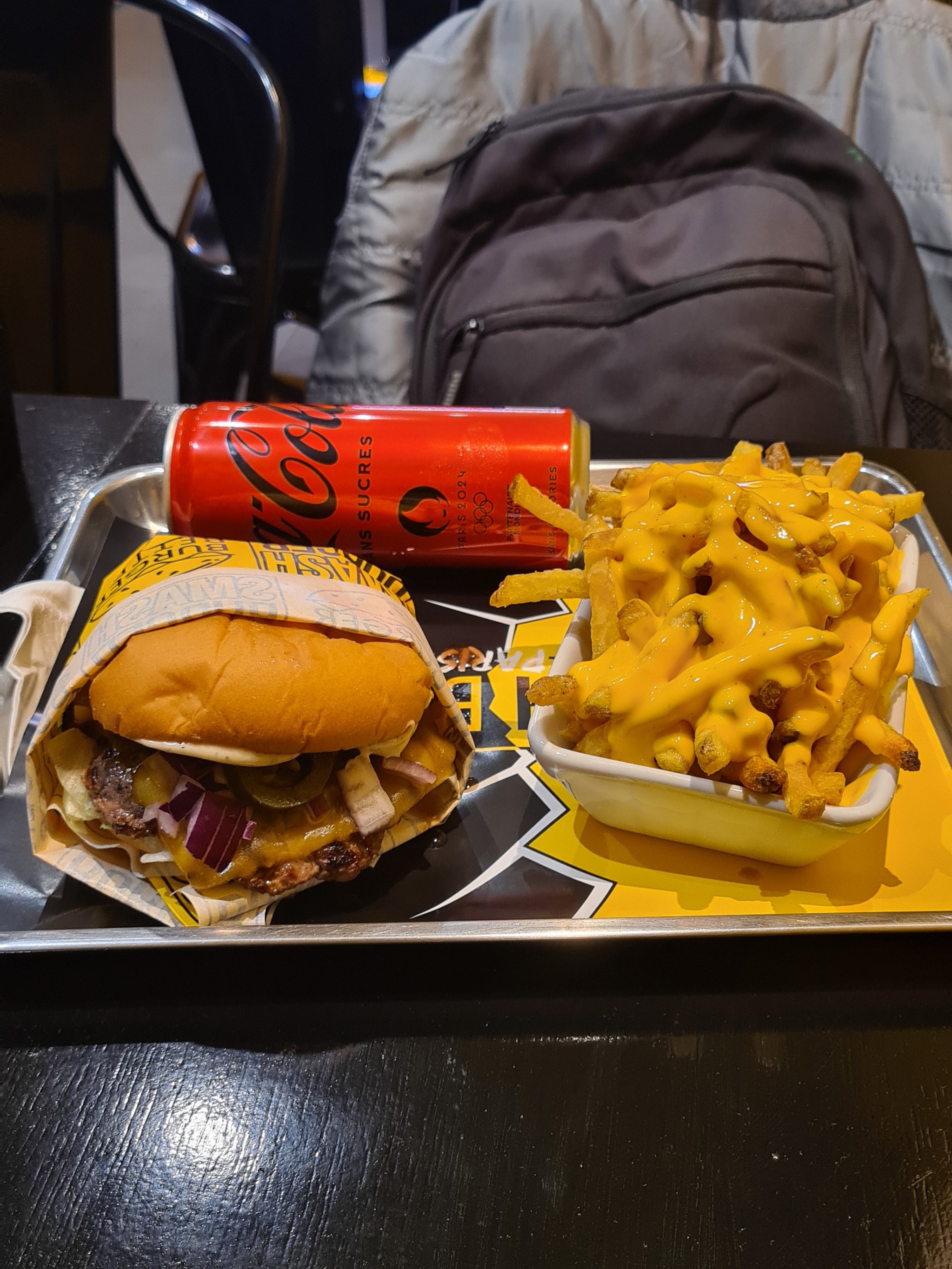 Tout d'abord le personnel était vraiment sympathique et chaleureux, et les frites étaient très bonnes, dignent d'être mangées sans sauce ! Malheureusement pour le burger, j'ai pas retrouvé la qualité à laquelle je m'attendais en lisant les commentaires, le steak était certes plat, mais n'avait pas le croustillant caramélisé qu'on attend d'un smash et de manière générale j'ai trouvé le burger un peu petit (mais je suis un gros mangeur). C'est meilleur que d'aller manger chez McDo & Co mais on reste dans le milieu de gamme.