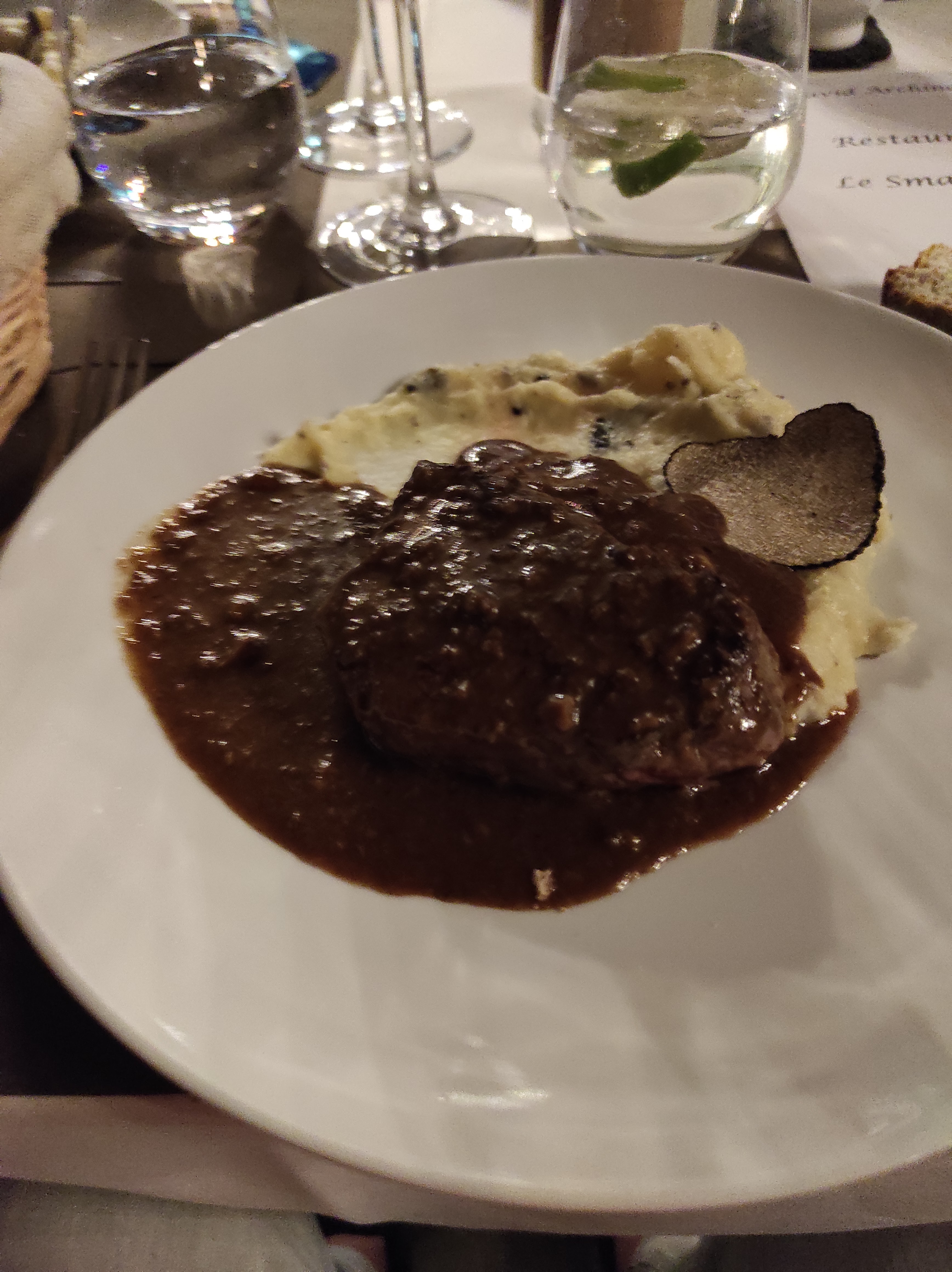 Restaurant exceptionnel, chef qui se rend maître de la truffe, un menu certe un peu copieux mais la saveur des mets est au rendez-vous. Les prix, pour des plats truffés de truffes, ne sont pas si ahurissants. UN SEUL GROS POINT NÉGATIF : il vaut une ⭐ en moins ! Absence de papier toilette (fin de rouleau), accompagné du manque de papier pour s'essuyer les mains (1 feuille). Dommage pour un restaurant ma foi incroyable, mais vu que je n'aime pas terminer sur un point négatif : Restaurant qui détrône de loin tous les autres restaurants où j'ai pu m'asseoir à une table et commander. À l'équipe formidable du Smach Club.