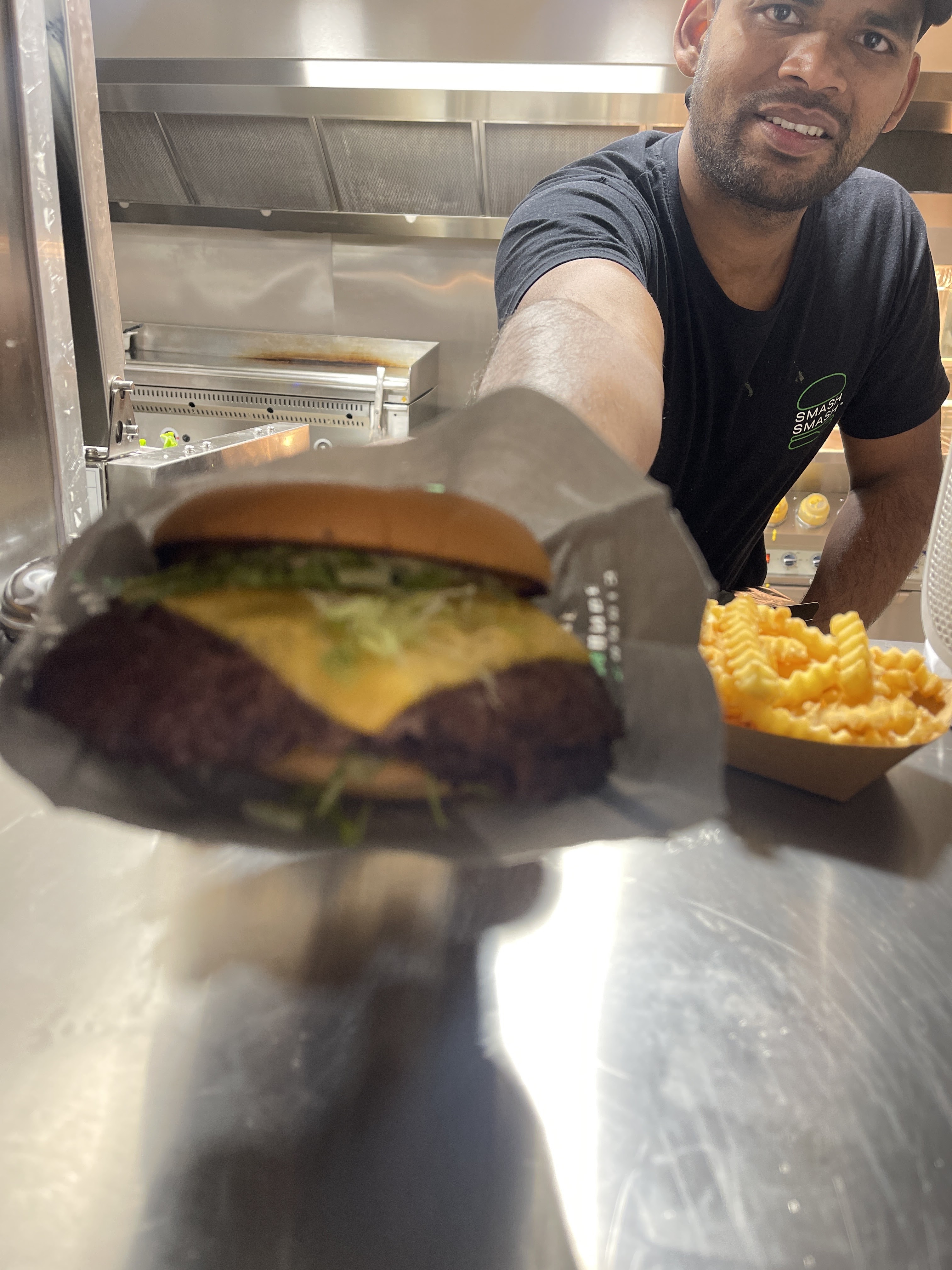 SMASH SMASH Burger a été pour moi une découverte incroyable avec des saveurs et des goûts qu’on ne trouve pas ailleurs… J’apprécie l’accueil et le professionnalisme des employers et la rapidité du service. Je conseille brièvement 🫶