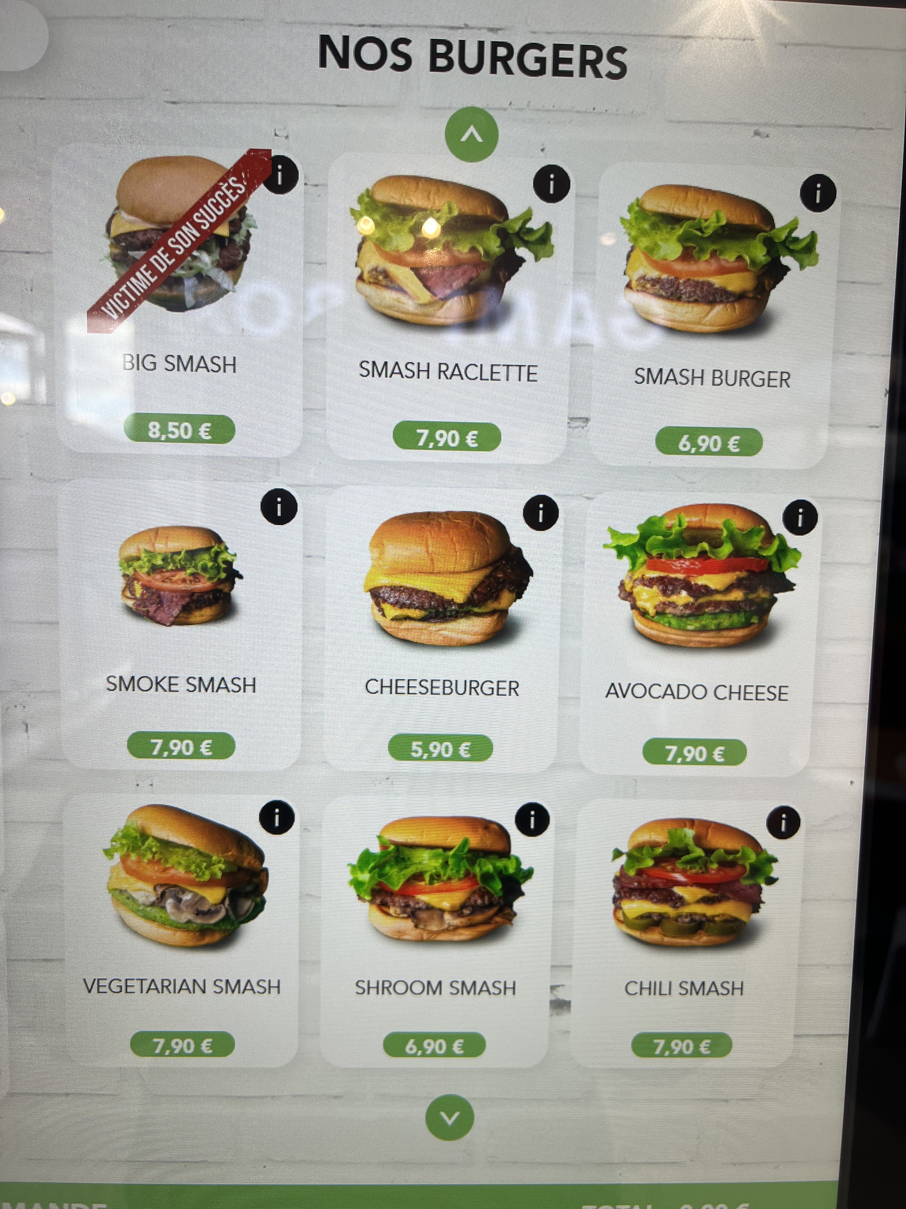 Bon smash burger. Je n'ai apprécié le fait que le restaurant n'accepte pas les tickets restaurant papier. En effet, nous n'avons pas tous la chance d'avoir une carte restaurant. Je trouve ça dommage.