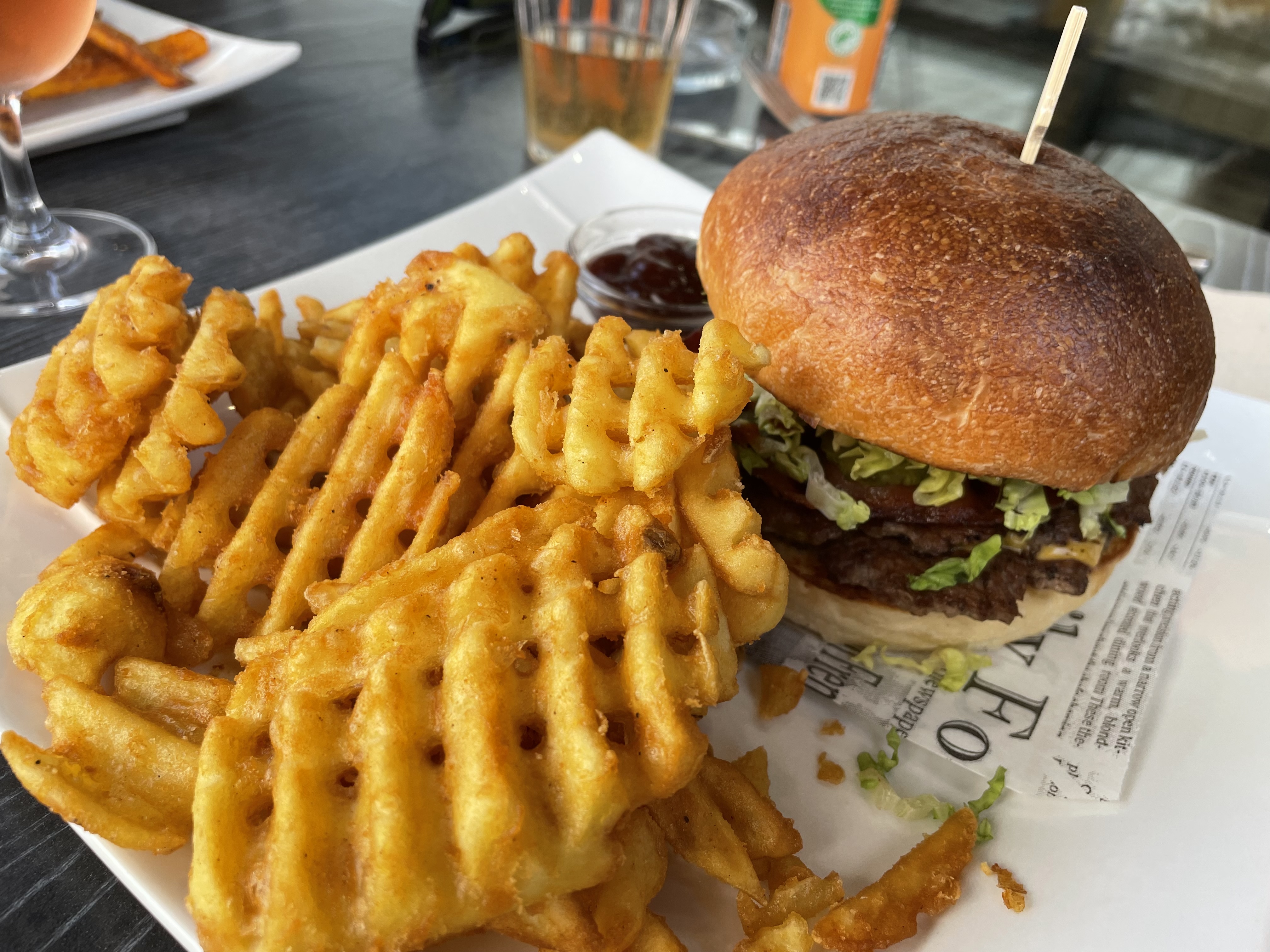Très TRÈS bon smash burgers, généreux, savoureux, et encore meilleur avec les waffle fries 😍
