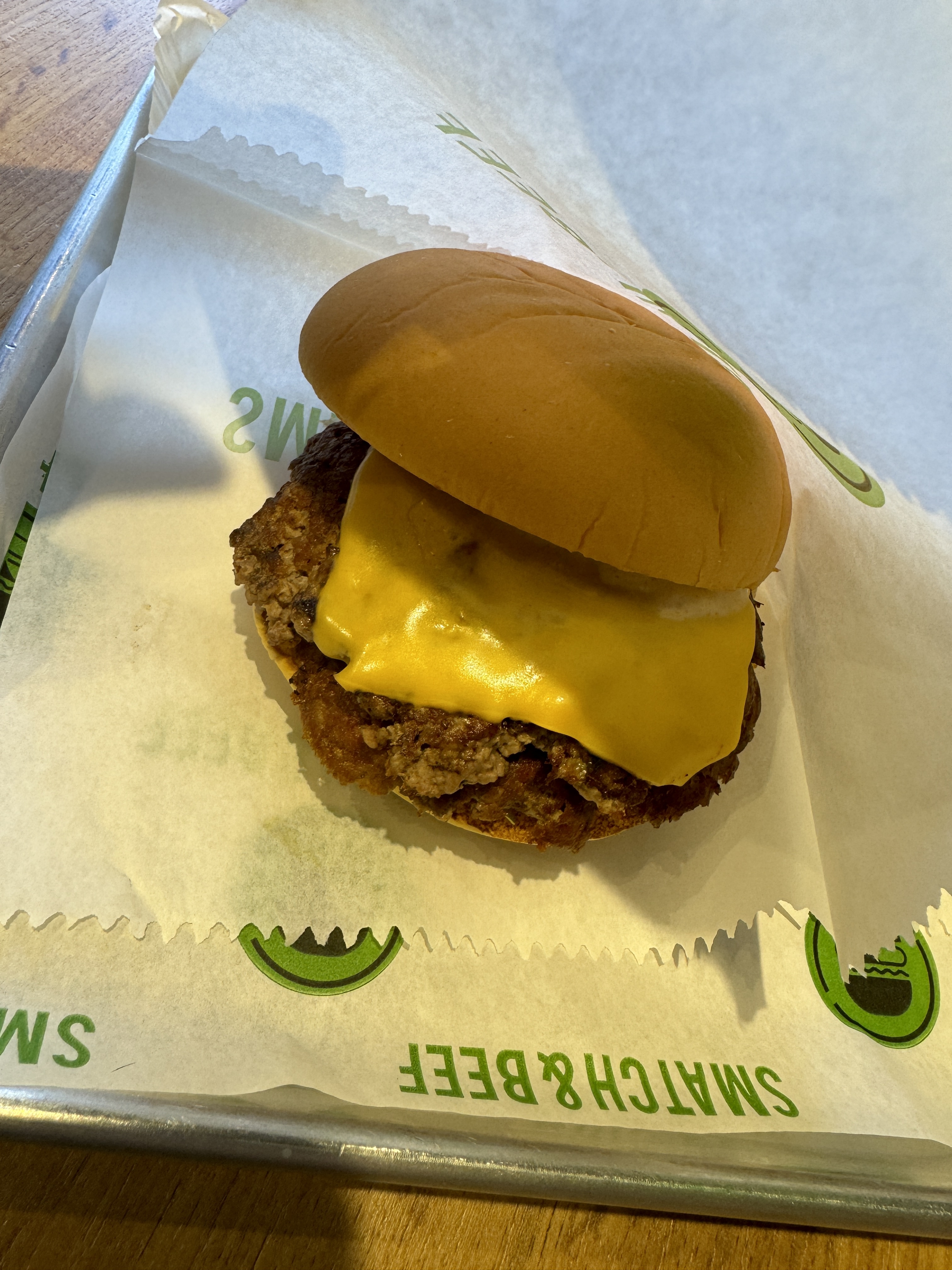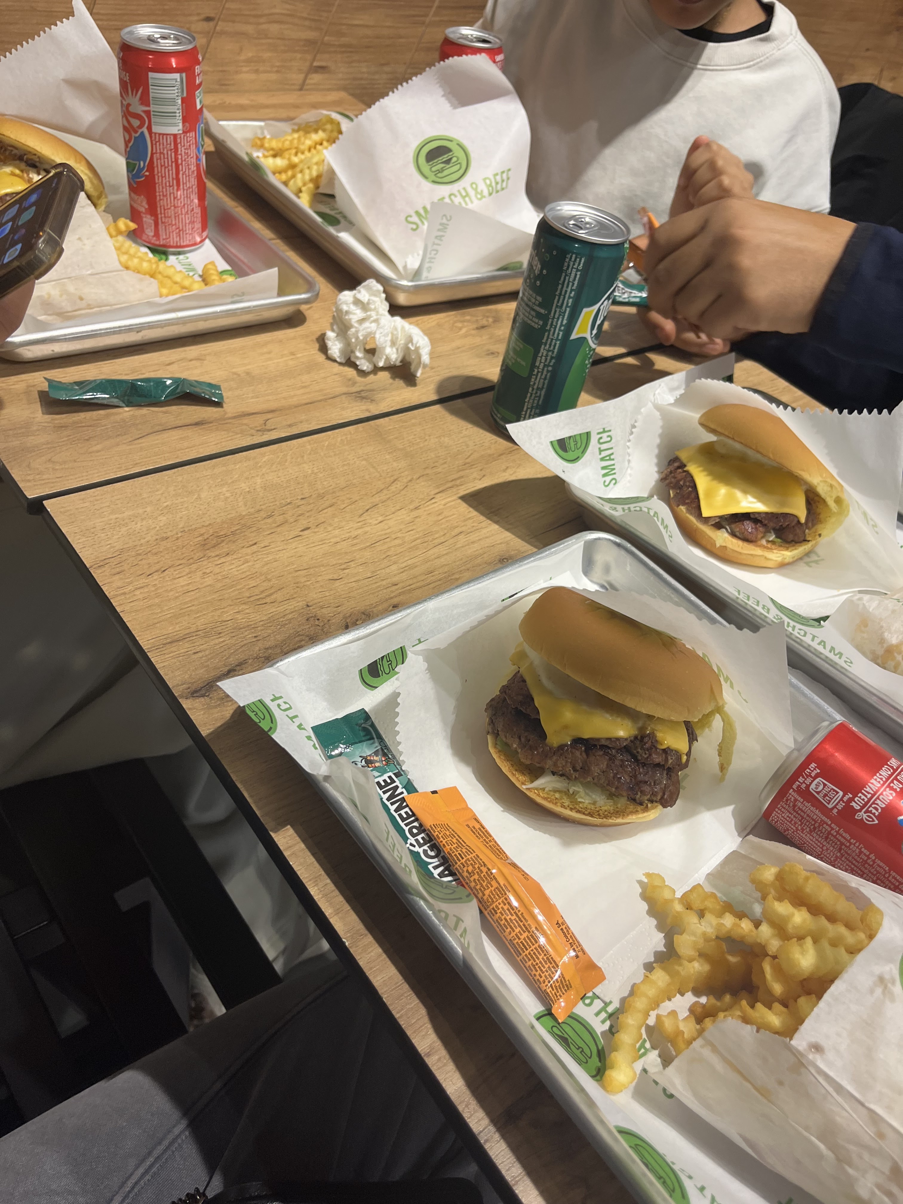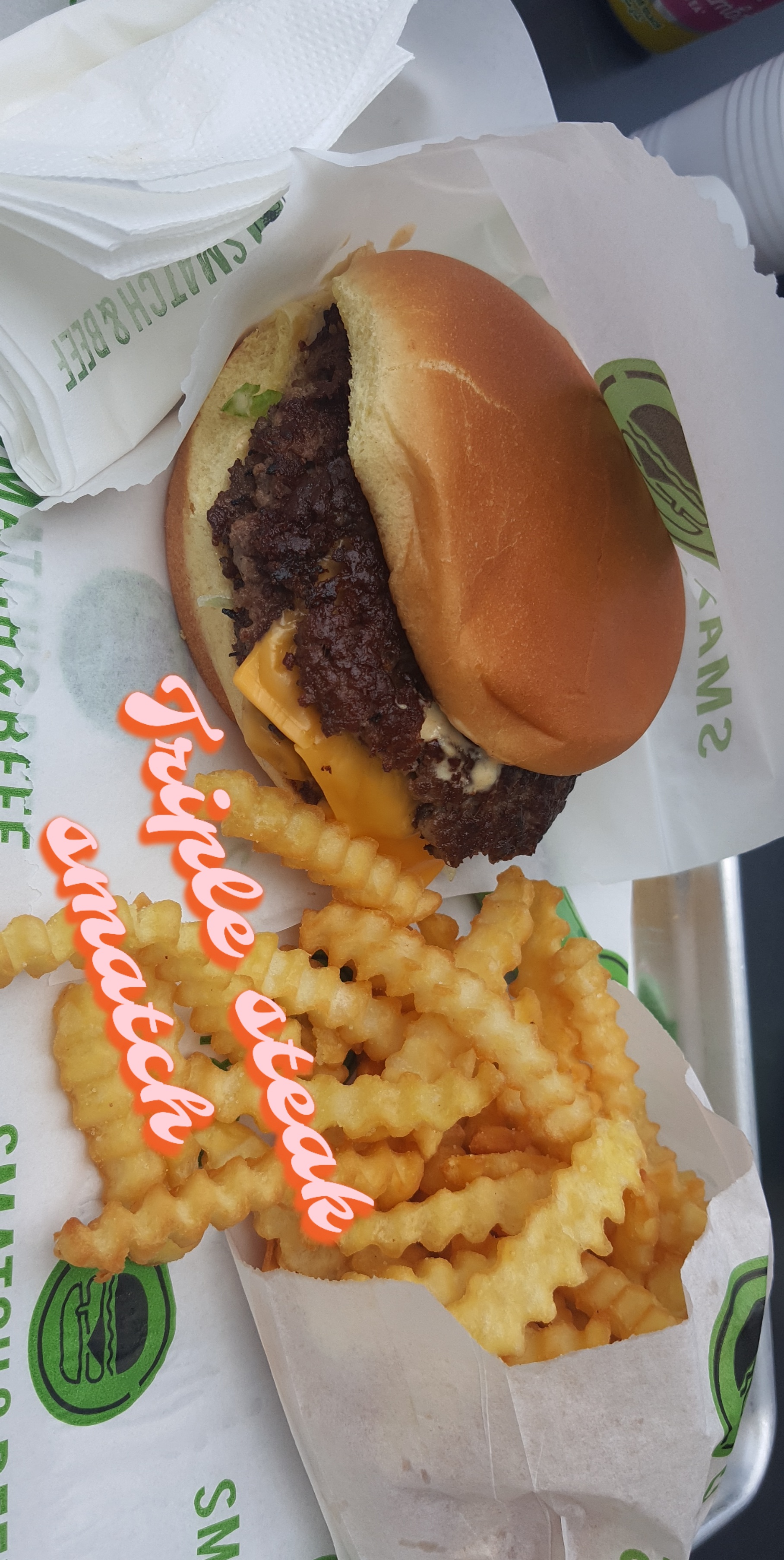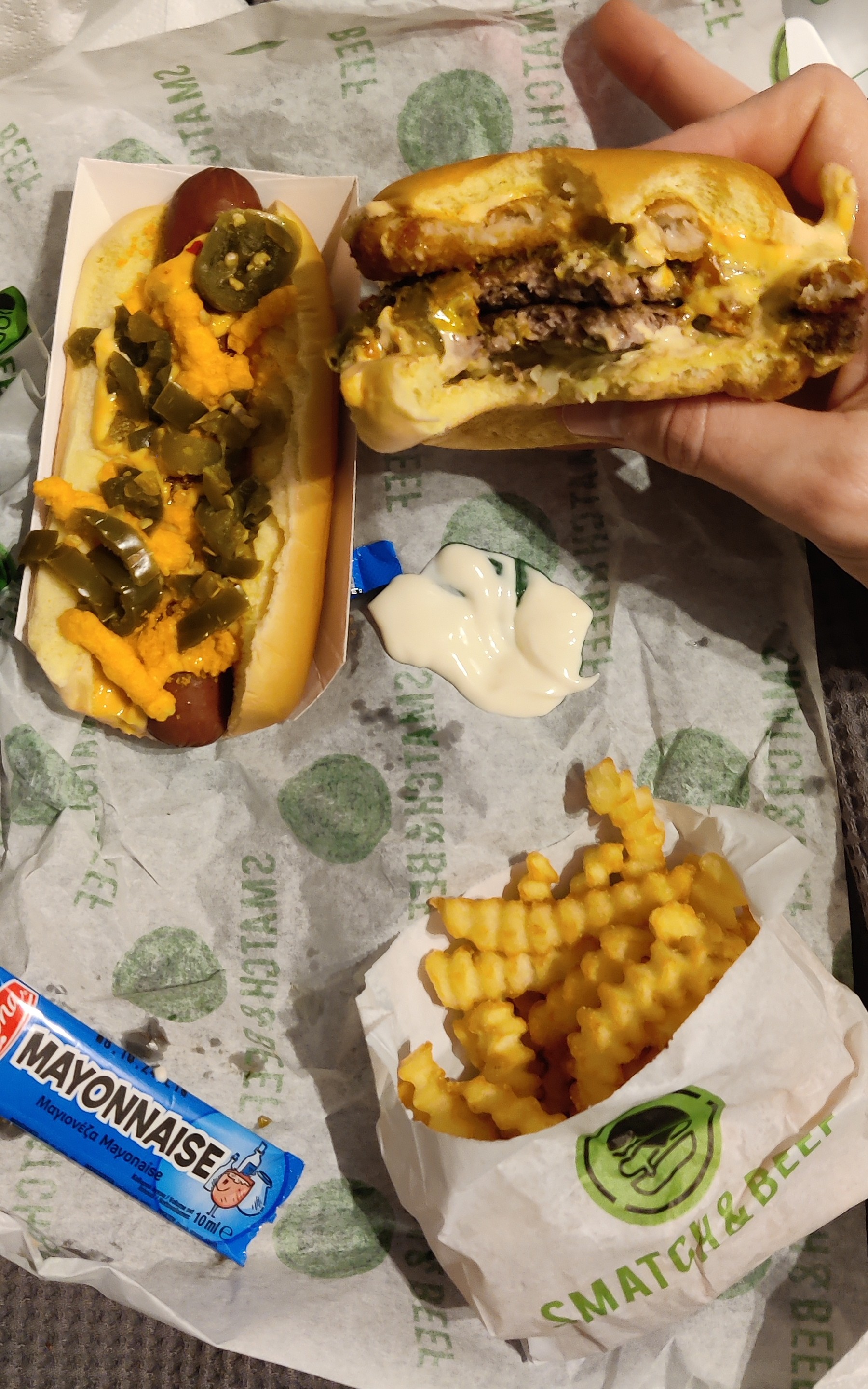 Nous avions envie de renouveler l'expérience du burger smatché. Cette fois nous nous sommes rendu sur place. Nous avons été accueillis par le responsable et son équipe avec un sourire malgré le Rush des commandes et des livreurs venus récupérer leurs commandes. Nous avons choisi nos commandes sur une grande carte claire et facilement compréhensible. Nous avons opté pour l'offre Signature (5€ supplémentaires pour le deuxième burger). Un double cheeseburger et un double smatch burger). Les burgers étaient excellents et le fait que les viandes soient plates, la viande ne s'échappe pas du burger. Sincèrement le meilleur burger que j'ai mangé. Les frites sont délicieusement salés hummm. Pour finir le tiramisu au chocolat est très bon et pas trop sucré.🤔👍