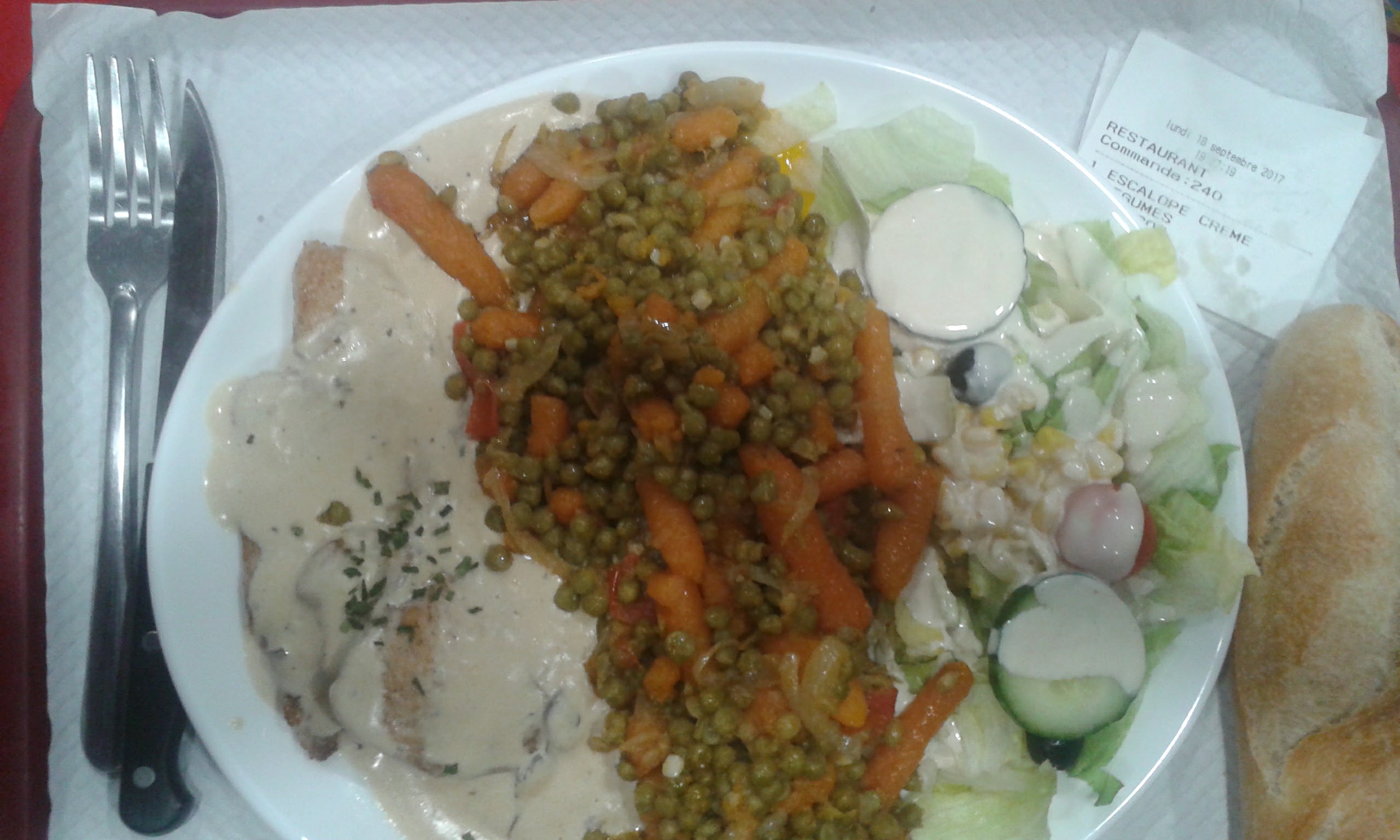 Première commande , l'assiette escalope crème avec deux accompagnement au choix était plutôt bon . Si il y aurait un point négatif ce serait les champignons qui ne peuvent être enlevés de la crème , il y a beaucoup de personnes dont moi même qui n'aiment pas les champignons
